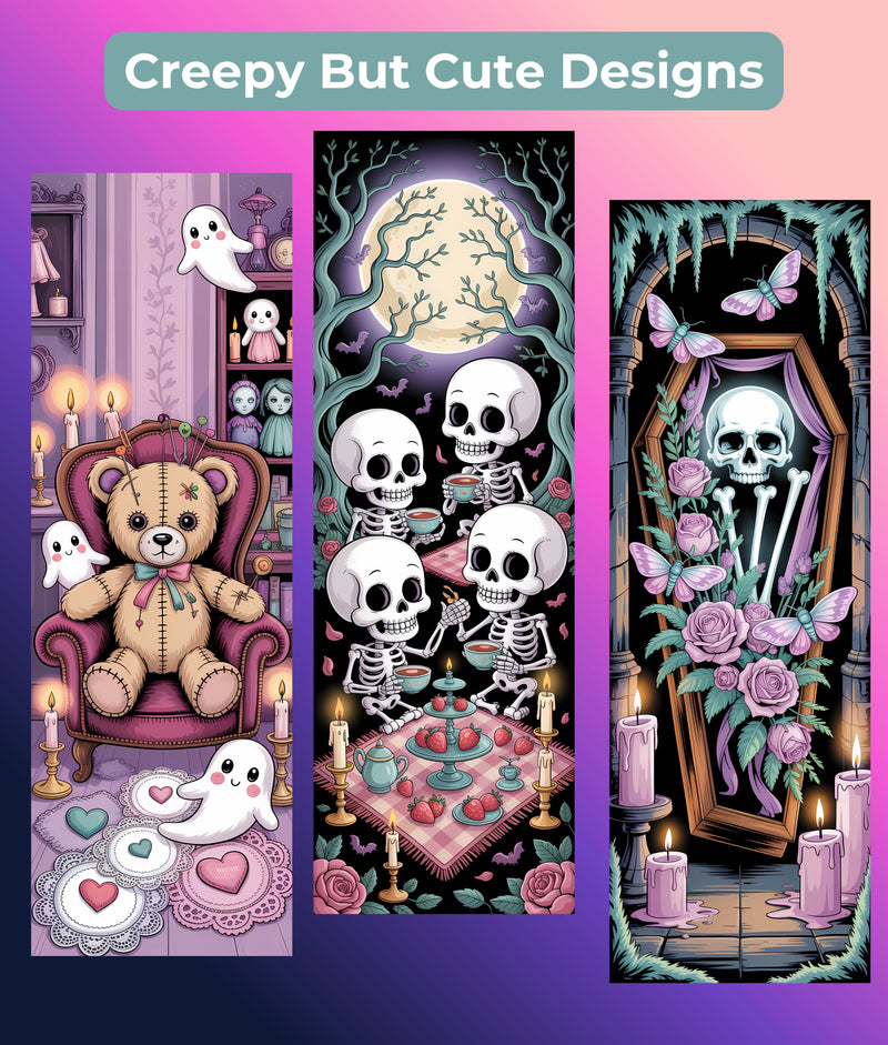 Discover the enchanting Creepy Cute Bookmark Bundle from our Junk Journals Collection. Perfect for adding a whimsical touch to your reading adventures, these unique bookmarks feature charmingly eerie designs that captivate and delight. Ideal for book lovers and journal enthusiasts, each bookmark is crafted to inspire creativity and imagination. Elevate your reading experience with this must-have collection, perfect for gifts or personal use. Dive into a world of quirky charm and let your books come alive with the Creepy Cute Bookmark Bundle.