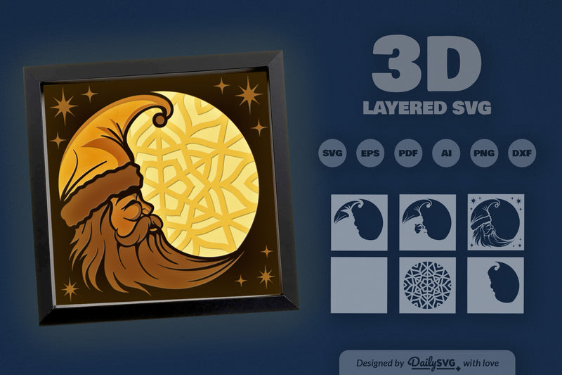 Crescent Moon Santa Claus Papercut SVG Bundle