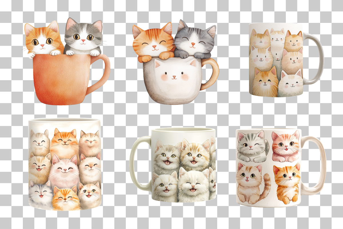 Delight in the charm of our Cute Cats Mug Wrap Design Bundle, featuring whimsical feline illustrations perfect for cat lovers. Ideal for personalizing your favorite mugs, these designs add a playful touch to your kitchenware. Perfect for gifts, crafts, and more, this bundle is a must-have for any cat enthusiast. Transform your mugs into adorable works of art with our easy-to-use designs, ensuring a purr-fectly delightful experience.