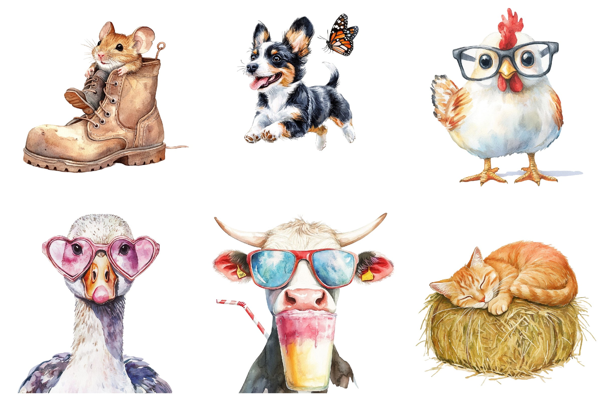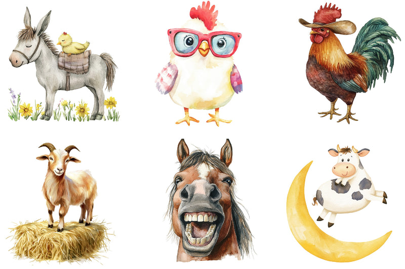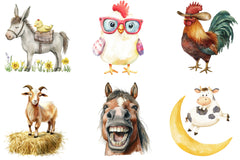 Discover the charm of our Cute Funny Farm Animals Clipart Bundle, perfect for adding a whimsical touch to your creative projects. Featuring delightful farm animal illustrations, this collection is ideal for scrapbooking, nursery decor, and playful invitations. Unleash your creativity with these adorable designs, perfect for DIY crafts and educational materials. Transform your projects with the joy and humor of our farm animal clipart, designed to inspire and entertain.