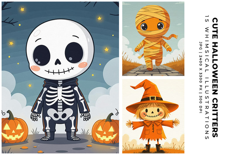 Discover the charm of Cute Halloween Critters, featuring delightful and spooky designs perfect for festive crafts and decorations. Ideal for adding a whimsical touch to your Halloween celebrations.