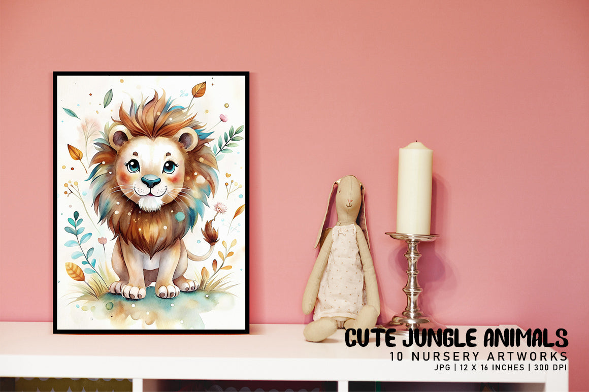 Transform your nursery with the Cute Jungle Animals collection, featuring charming designs of lions, elephants, and giraffes, perfect for creating a playful and adventurous atmosphere.