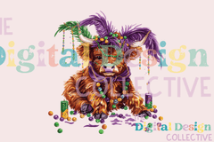 Cute Mardi Gras Highland Cow Clipart Bundle