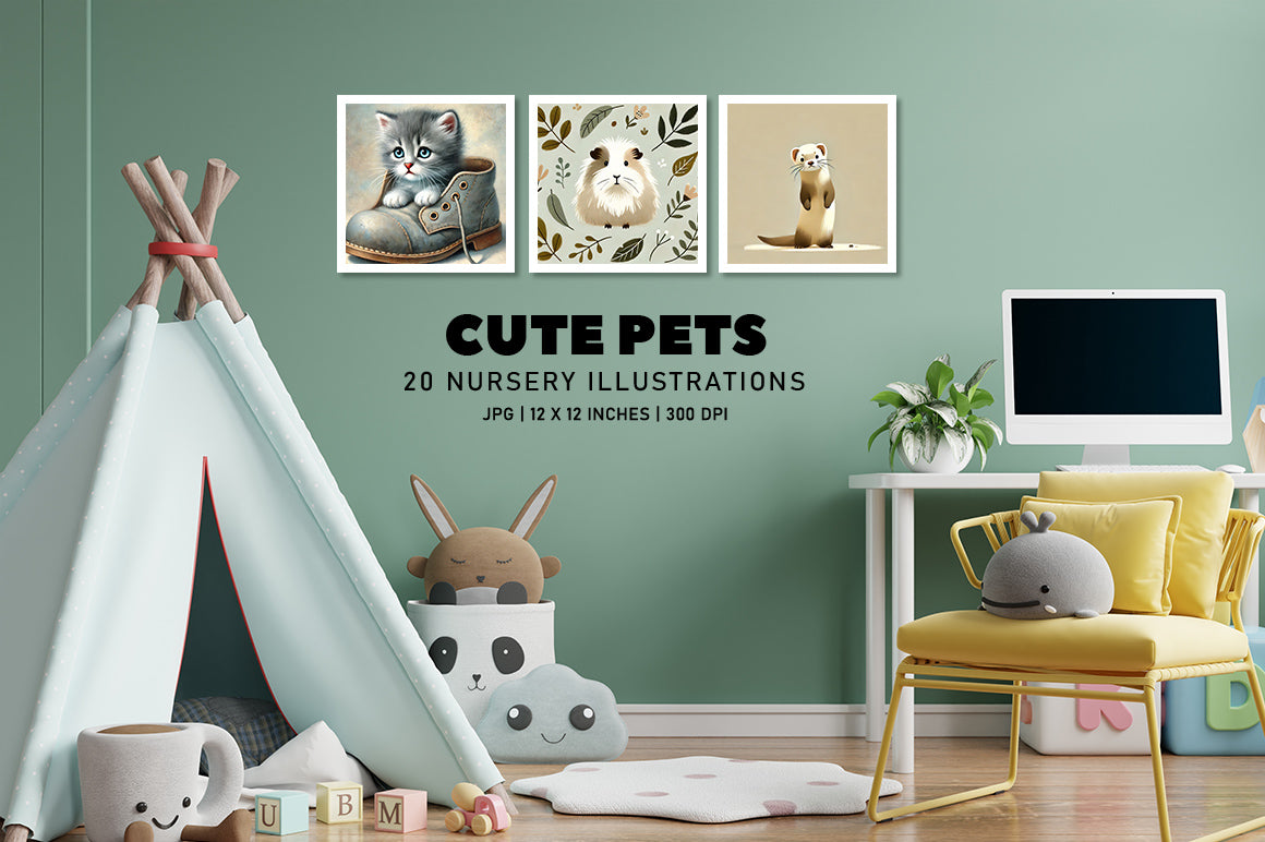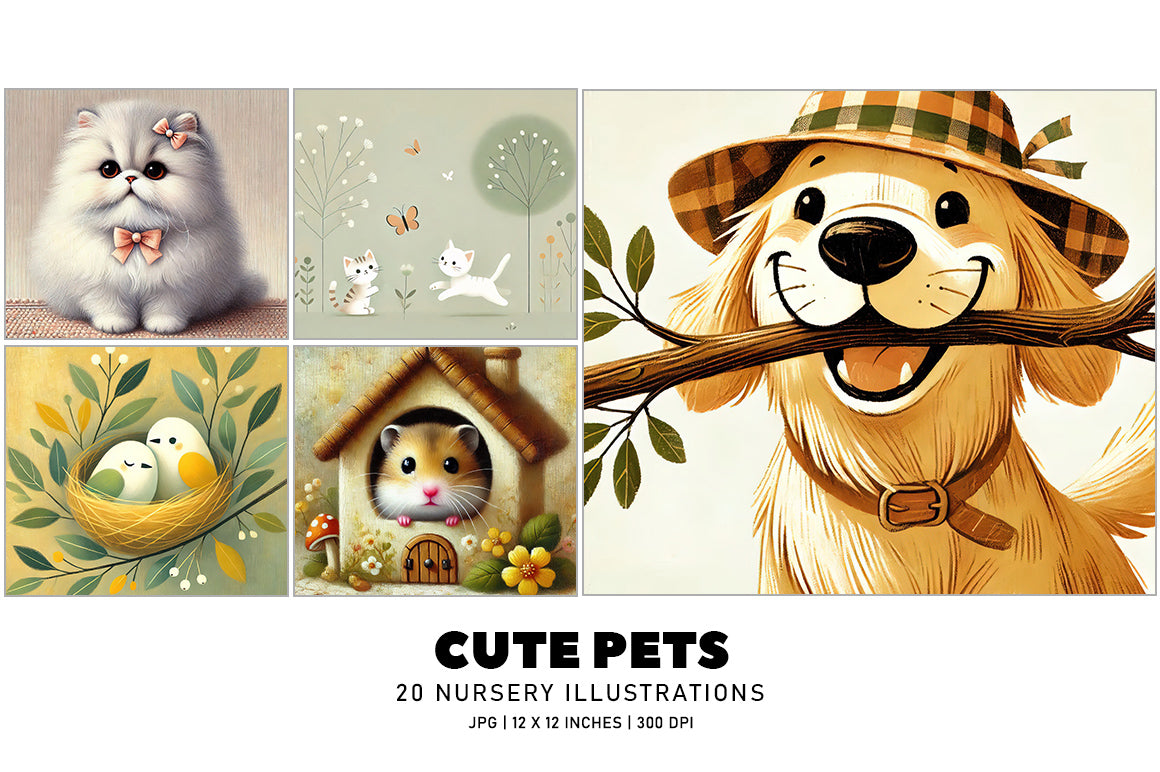 Discover the charm of Cute Pets - Nursery, a delightful collection of endearing pet designs perfect for creating a whimsical nursery atmosphere. Ideal for crafting enchanting nursery decor.
