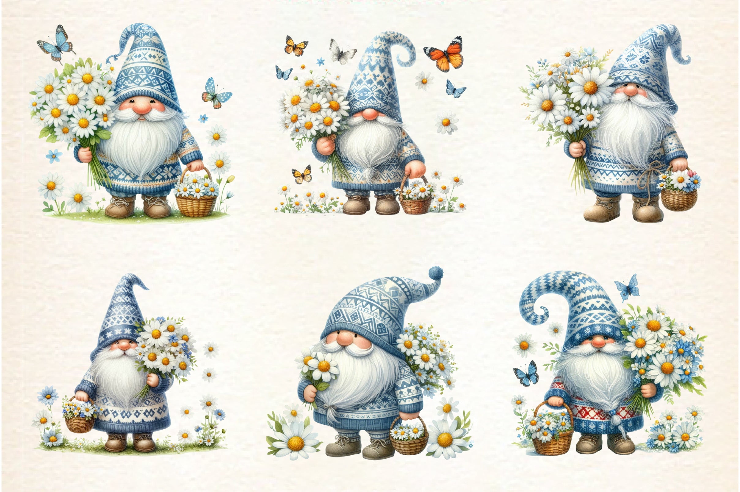 Unleash your imagination with this versatile Daisy Gnome Clipart Bundle, ideal for scrapbooking, card making, and digital art.