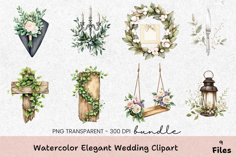 Transform your wedding projects with the Elegant Wedding Clipart Bundle, featuring exquisite designs perfect for invitations, stationery, and decor. This collection offers a variety of romantic elements, ensuring your special day is beautifully unique.