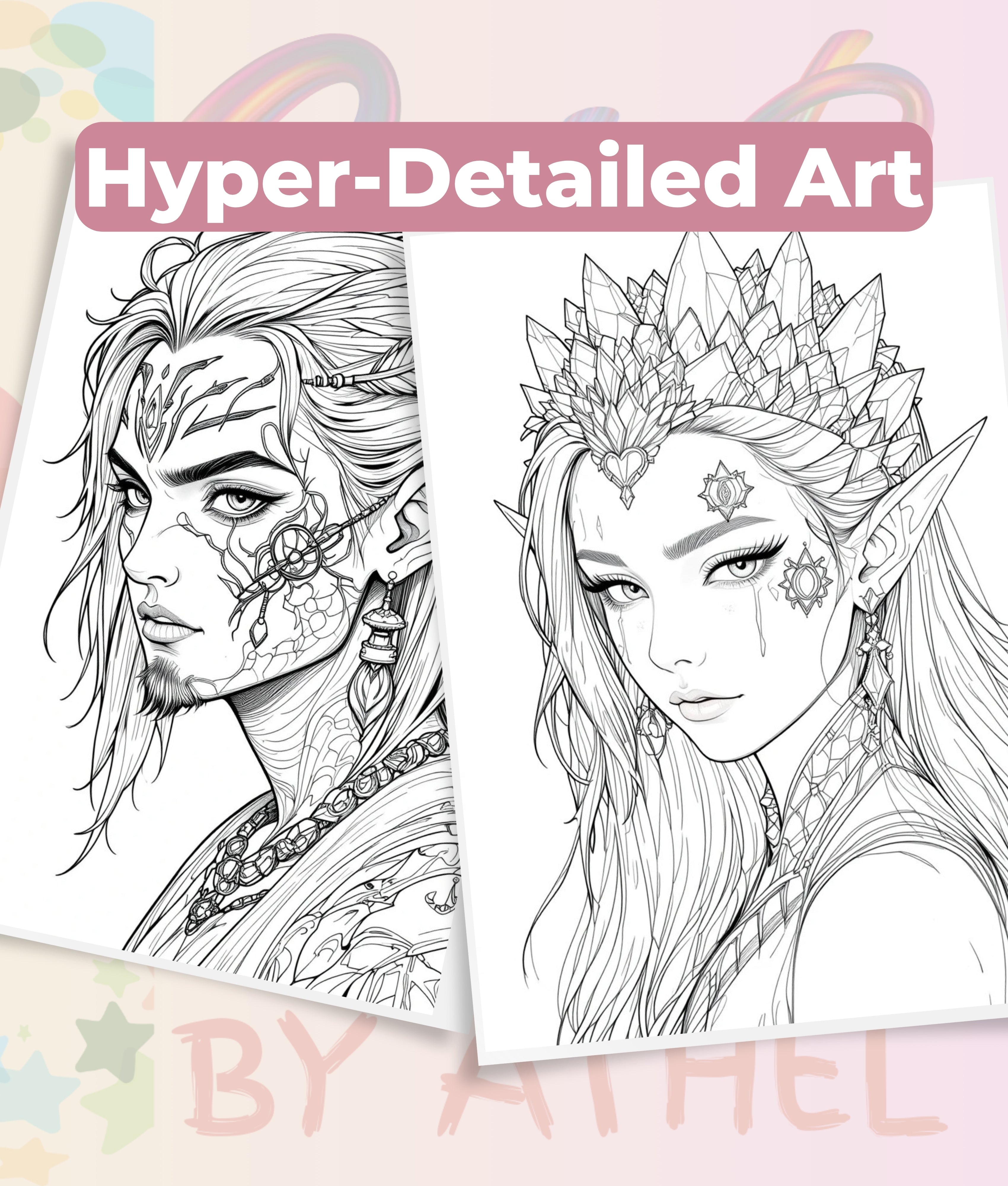 Unleash your creativity with the Elven Portraits Coloring Book Bundle, a captivating collection of intricate elven designs perfect for fantasy art enthusiasts. Dive into a world of magic and elegance with these beautifully detailed illustrations, ideal for relaxation and artistic expression. Perfect for both beginners and experienced colorists, this bundle offers hours of enchanting fun. Transform your coloring experience with this unique set, designed to inspire and delight. Elevate your artistic journey with the Elven Portraits Coloring Book Bundle today!