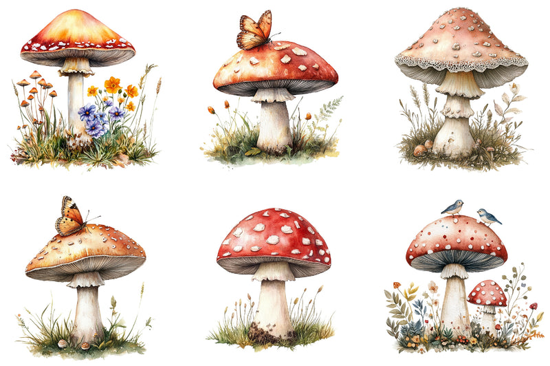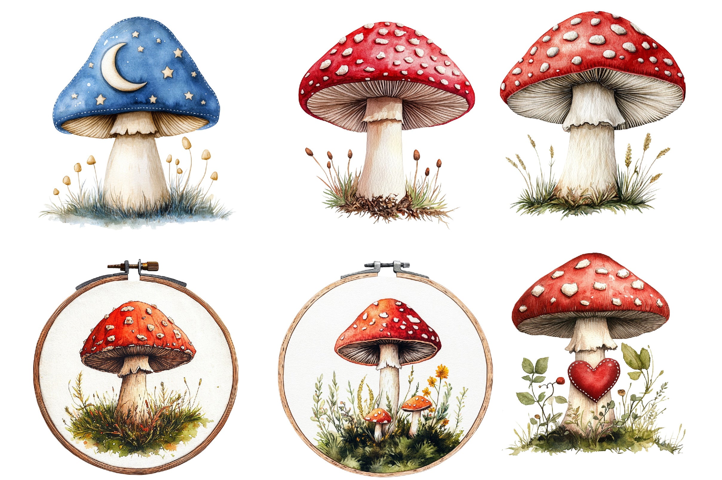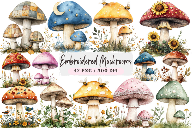Embroidered Mushrooms Clipart Bundle