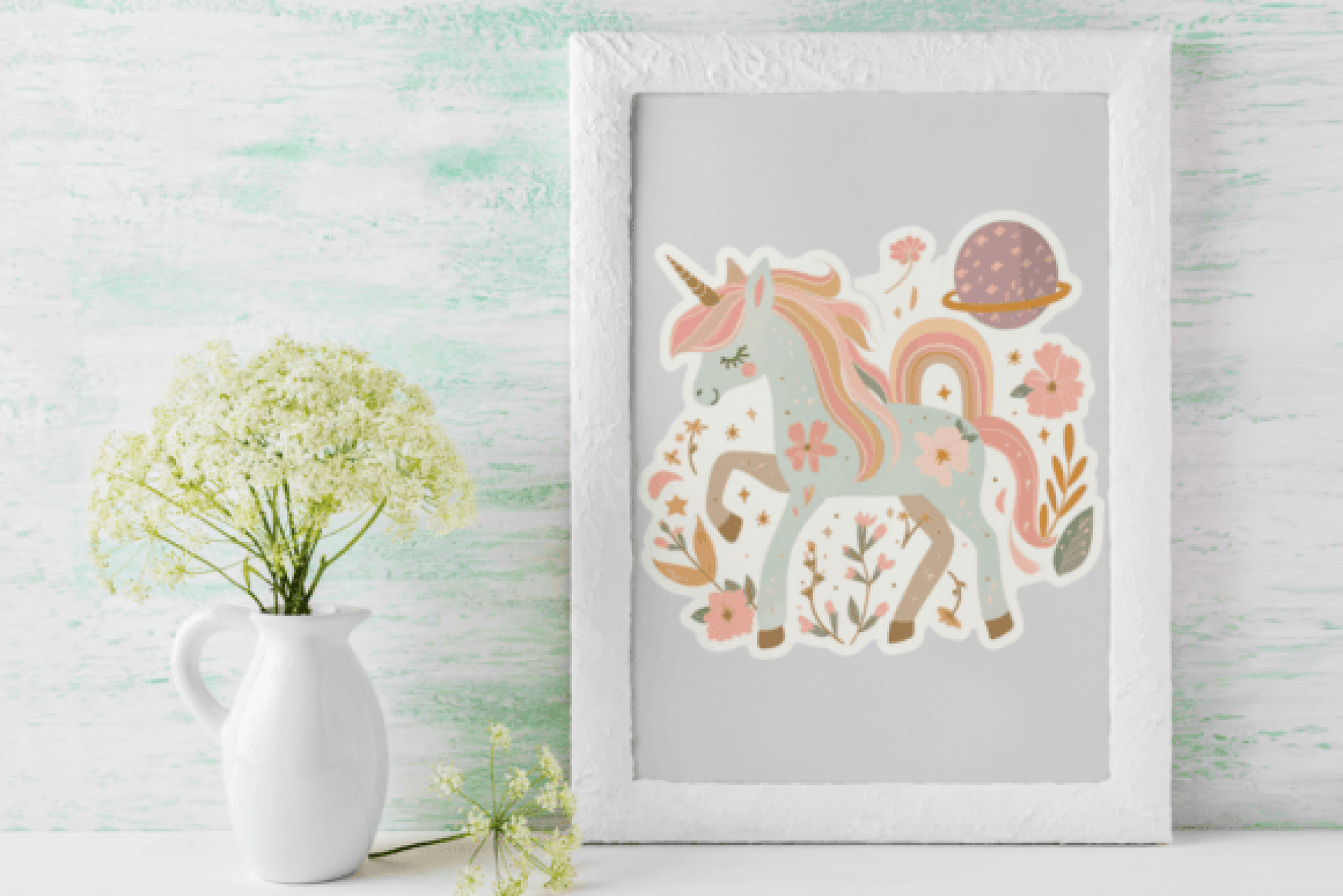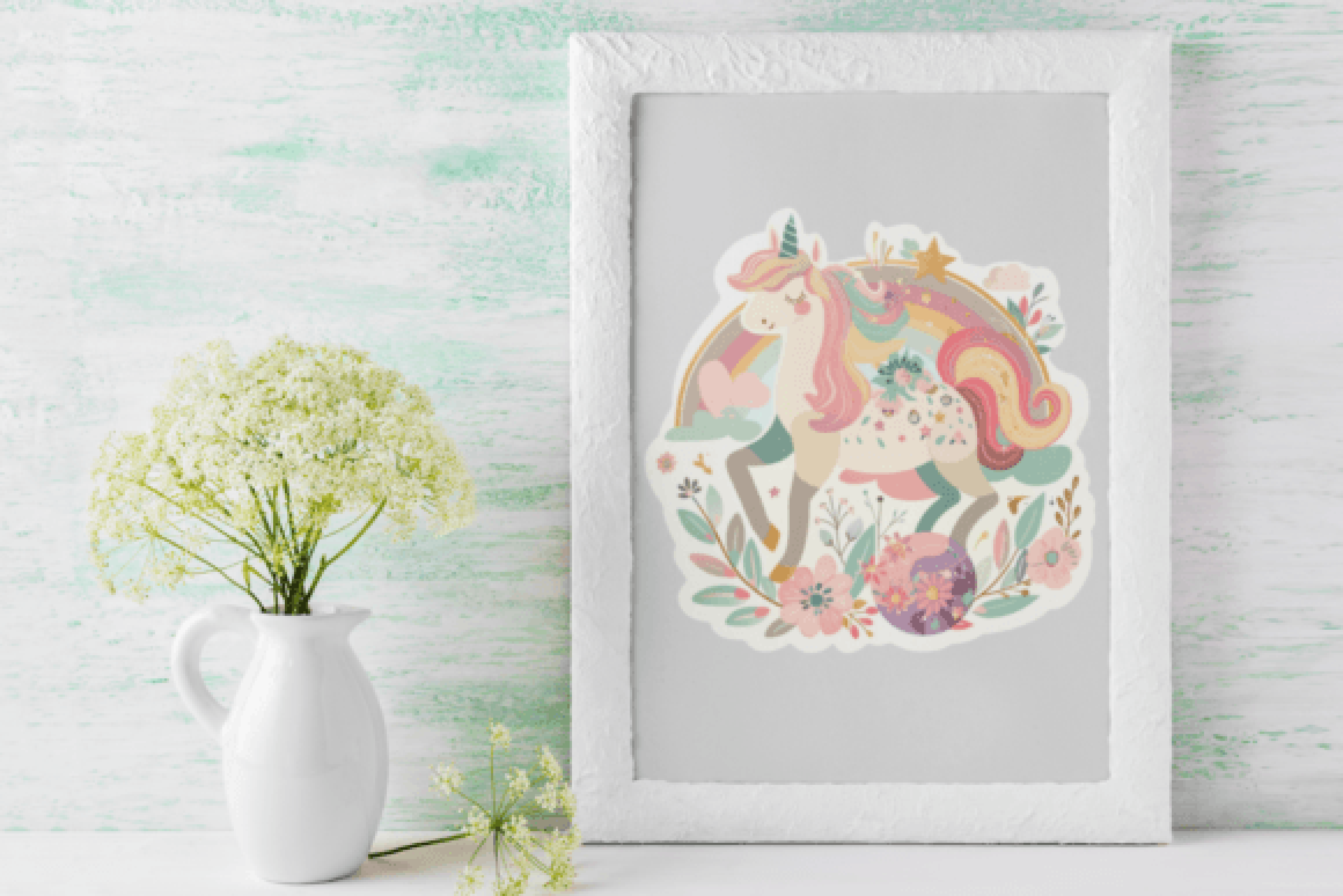 Enchanting Unicorn Floral Sticker Bundle
