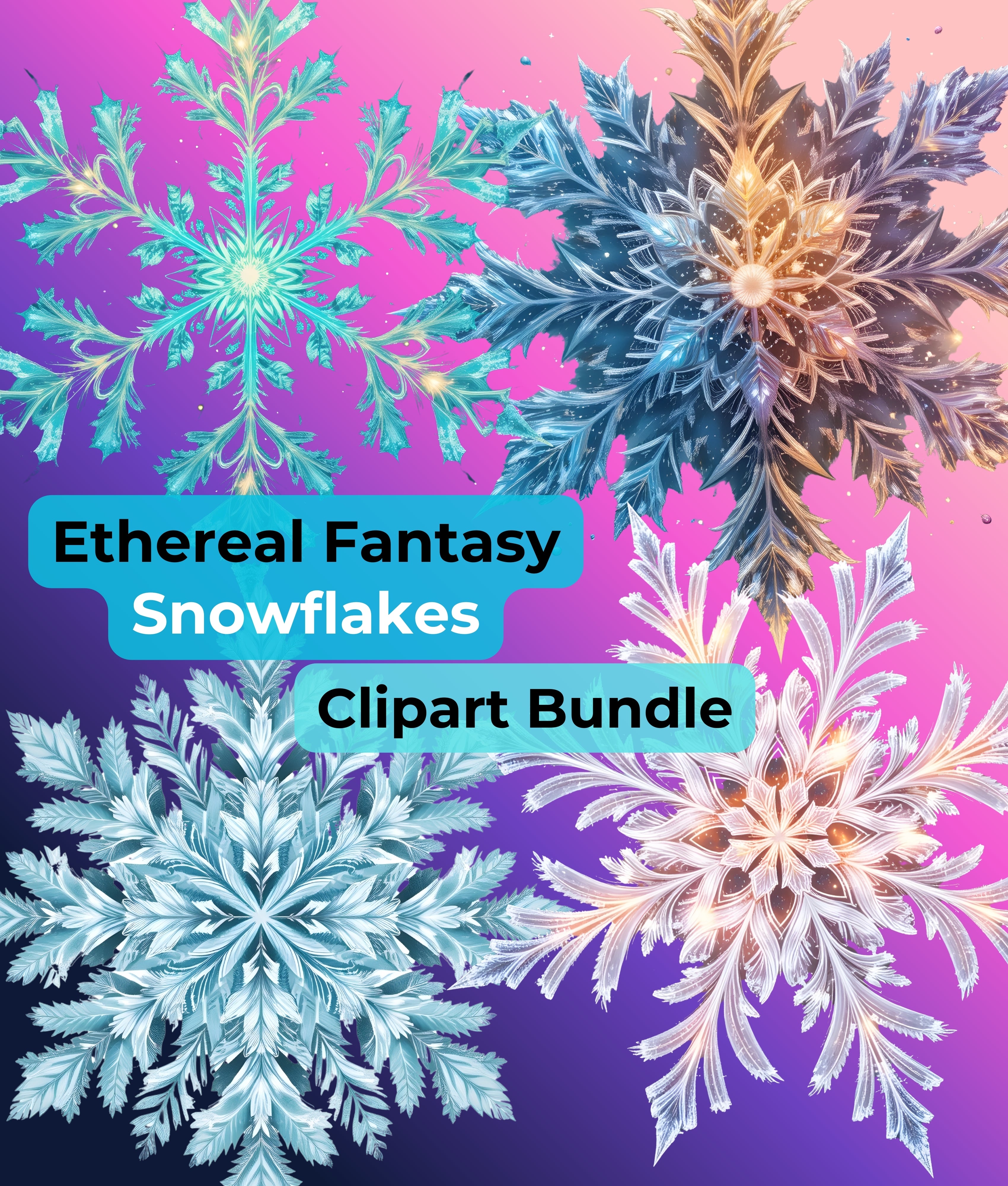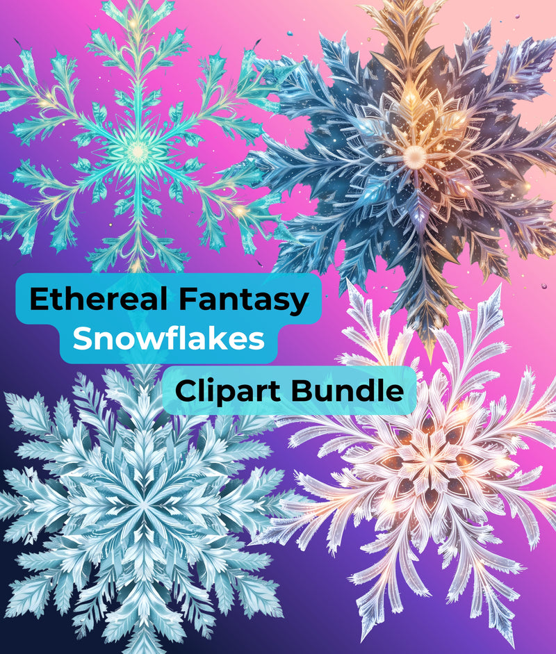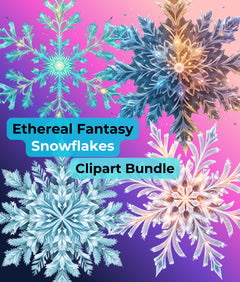 Transform your projects with the Ethereal Fantasy Snowflakes Clipart Bundle, featuring exquisite snowflake designs perfect for winter-themed crafts and digital creations.