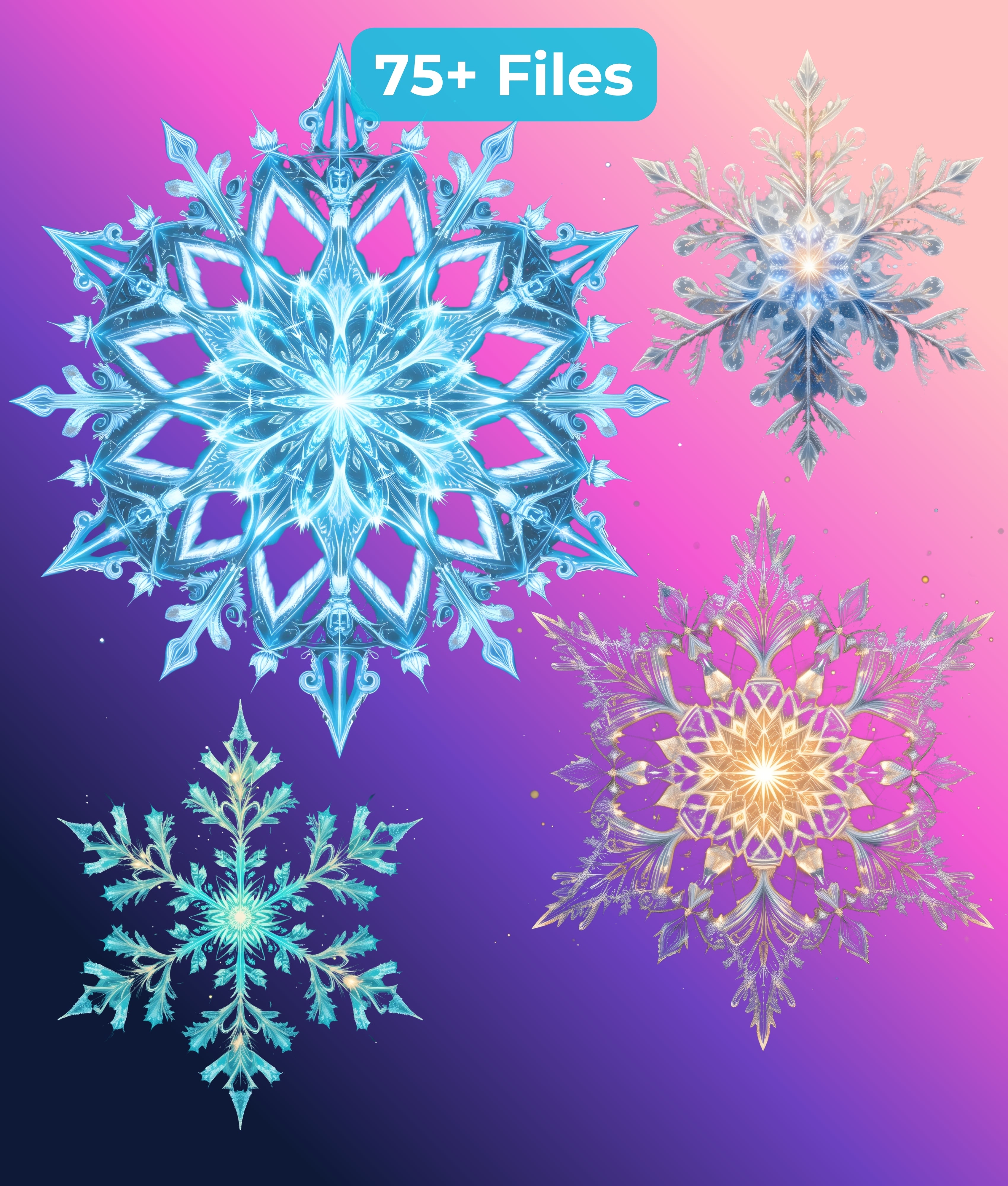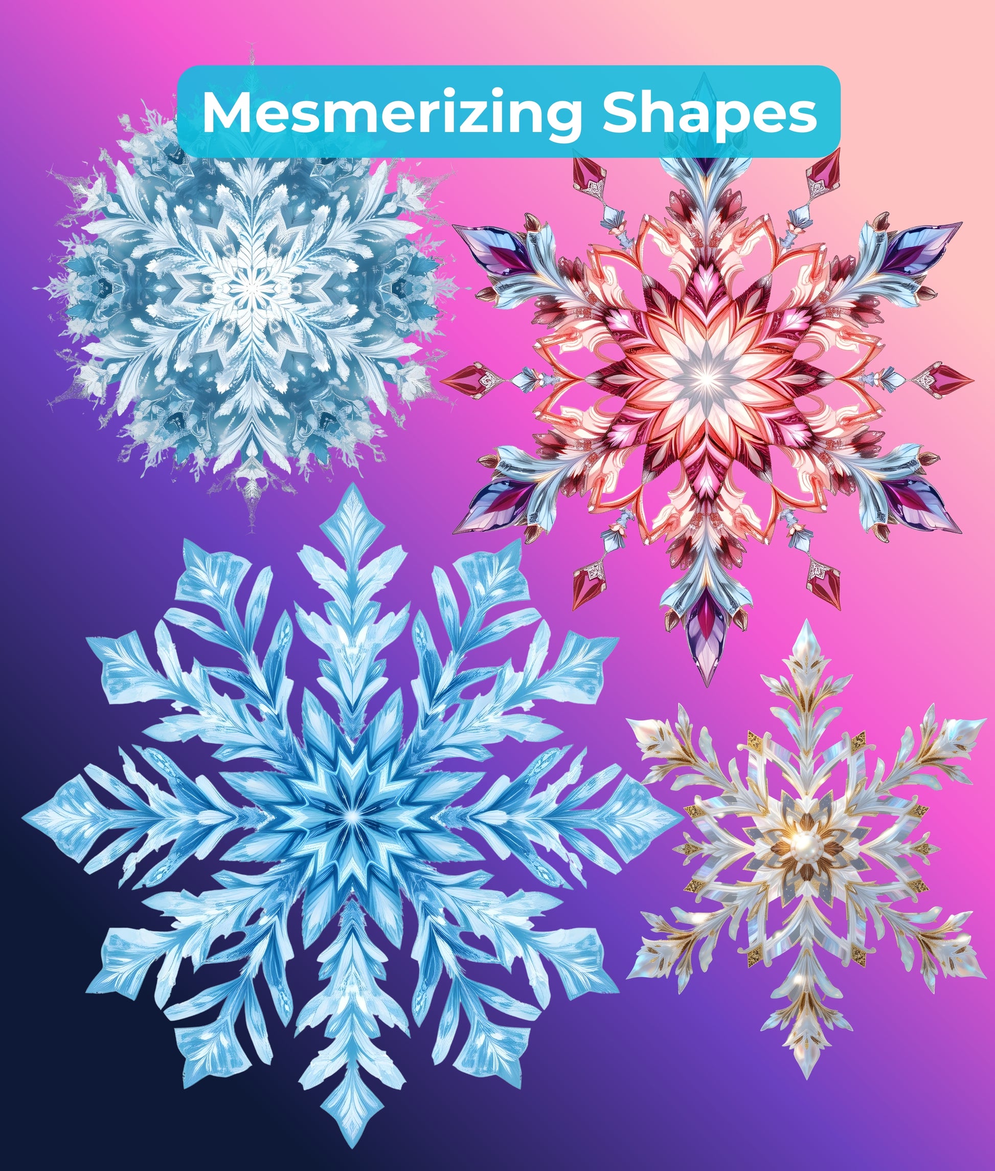 Discover endless possibilities with this versatile clipart bundle, designed to inspire and captivate with its intricate and whimsical snowflake patterns.