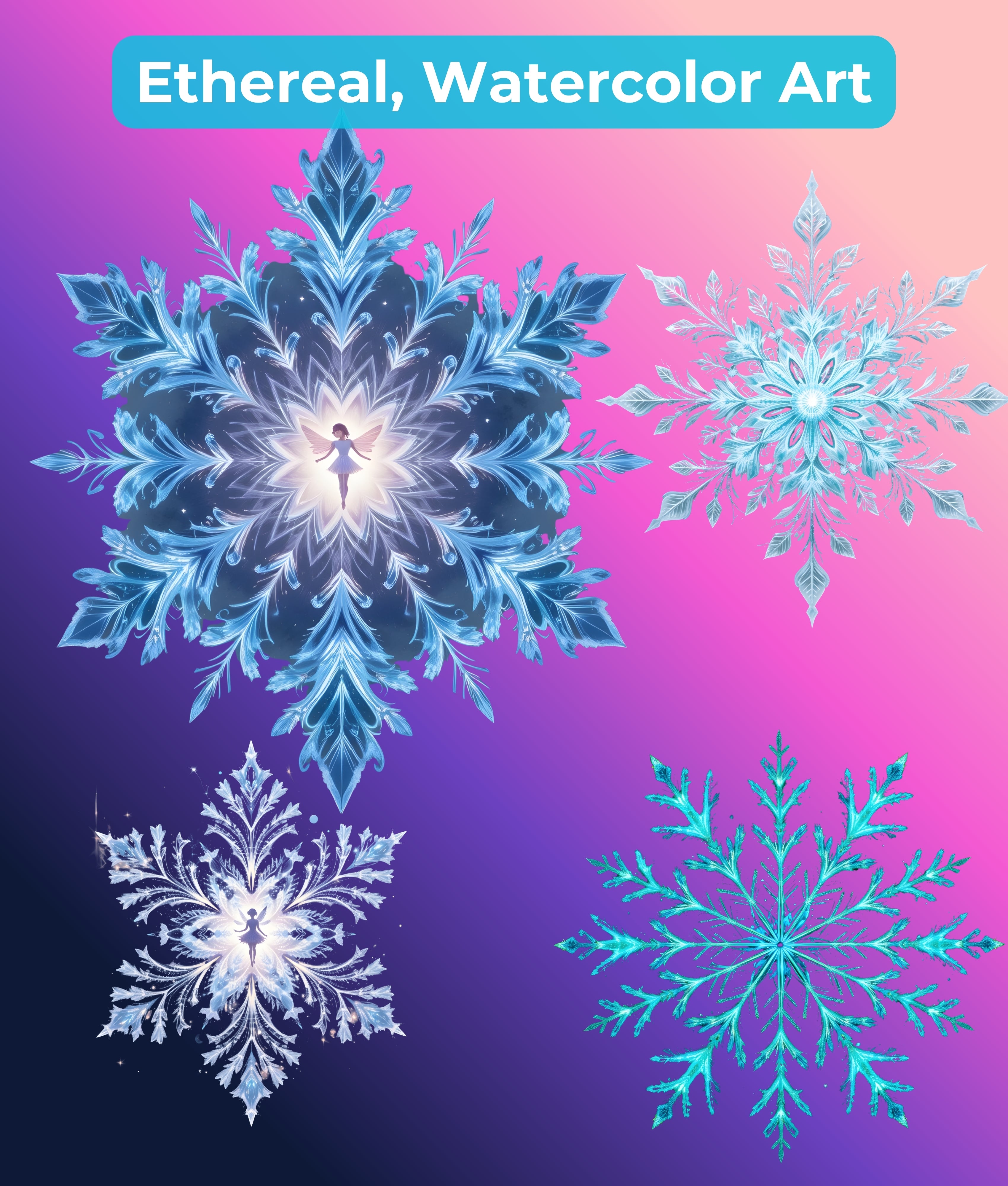 Ethereal Fantasy Snowflakes Clipart Bundle