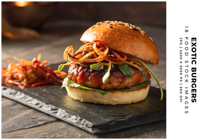Discover the allure of Exotic Burgers - Stock Images, featuring high-quality, mouth-watering burger visuals perfect for culinary blogs, restaurant menus, and food marketing campaigns. Elevate your brand with these captivating images that showcase unique burger creations, ideal for attracting food enthusiasts and boosting online engagement.