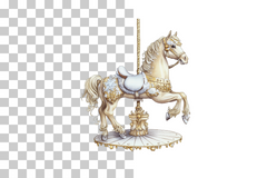 Elevate your designs with this captivating clipart collection, featuring delightful unicorns and carousel horses for a touch of fantasy.