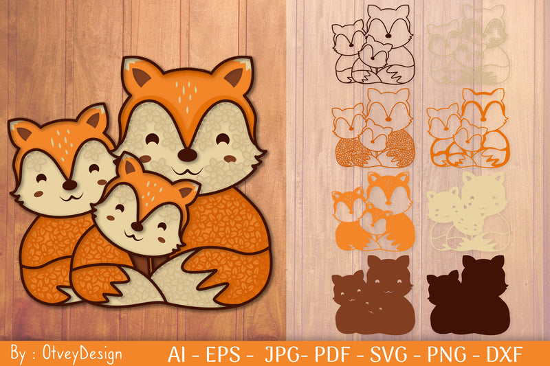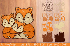 Family Fox Mandala Layered Papercut SVG Bundle