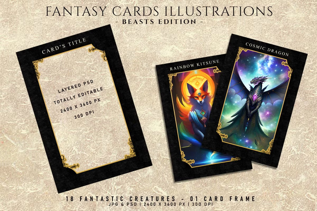 Unleash your imagination with Fantasy Cards: Beasts, a captivating collection of mythical creature designs perfect for fantasy enthusiasts and creative projects. Ideal for card games, scrapbooking, and magical crafts.