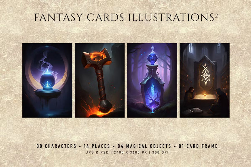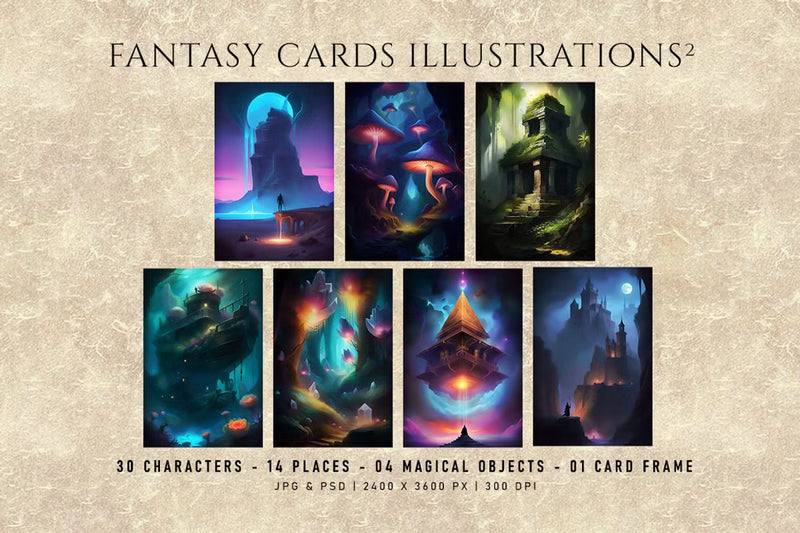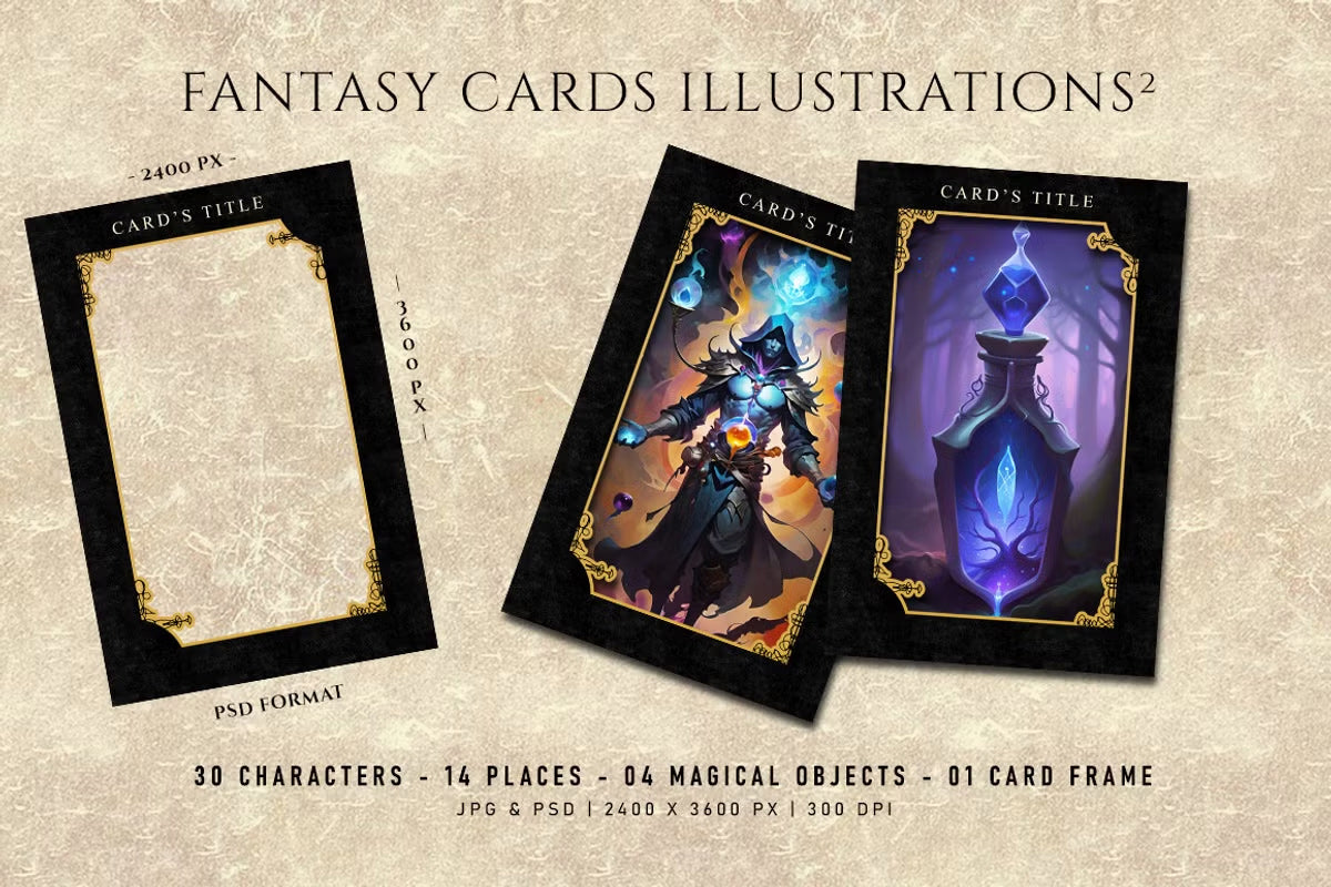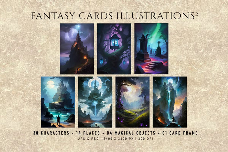 Unleash your imagination with Fantasy Cards: Illustrations 2, a captivating collection of mystical designs perfect for fantasy enthusiasts and creative projects. Dive into a world of enchantment and bring your artistic visions to life.