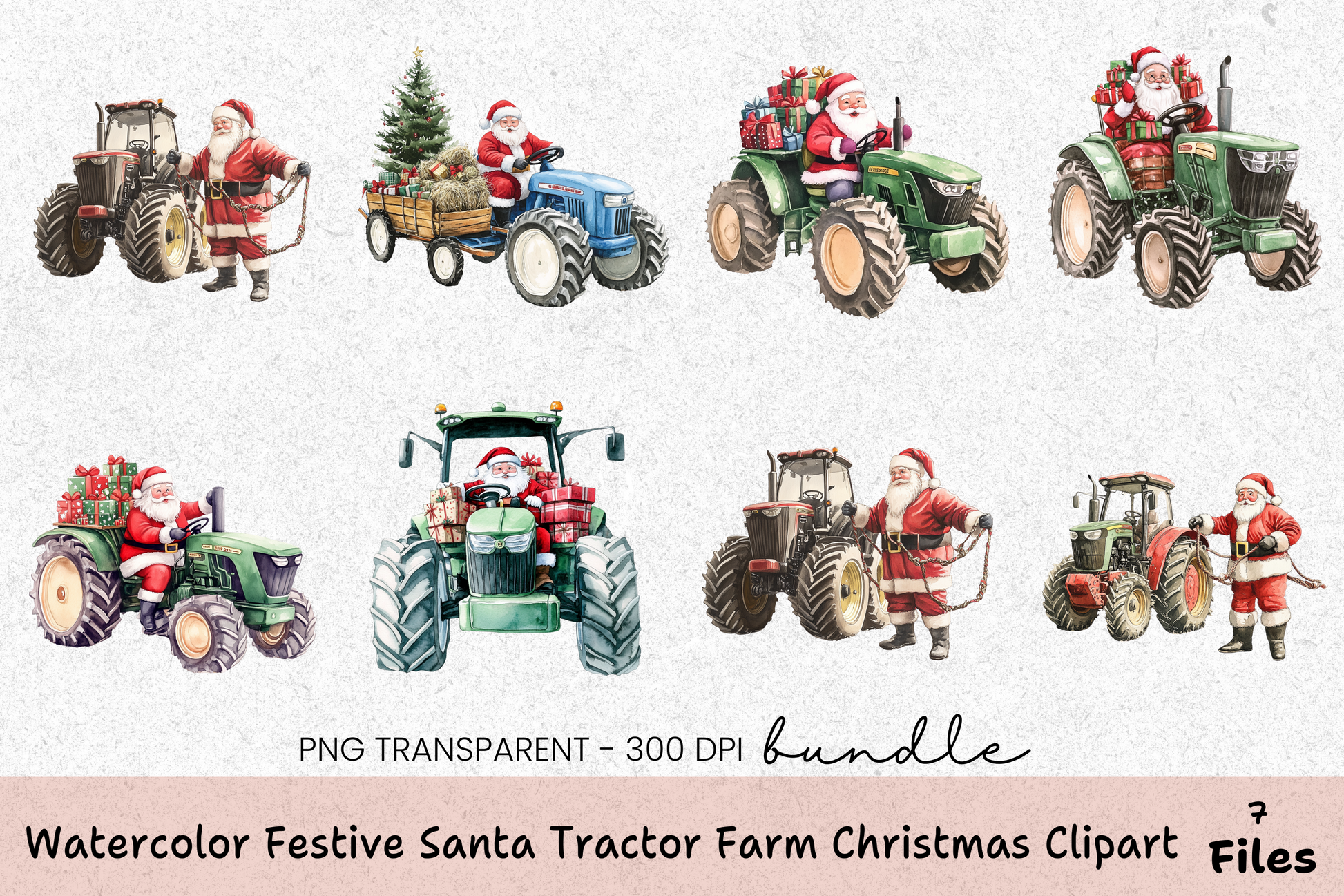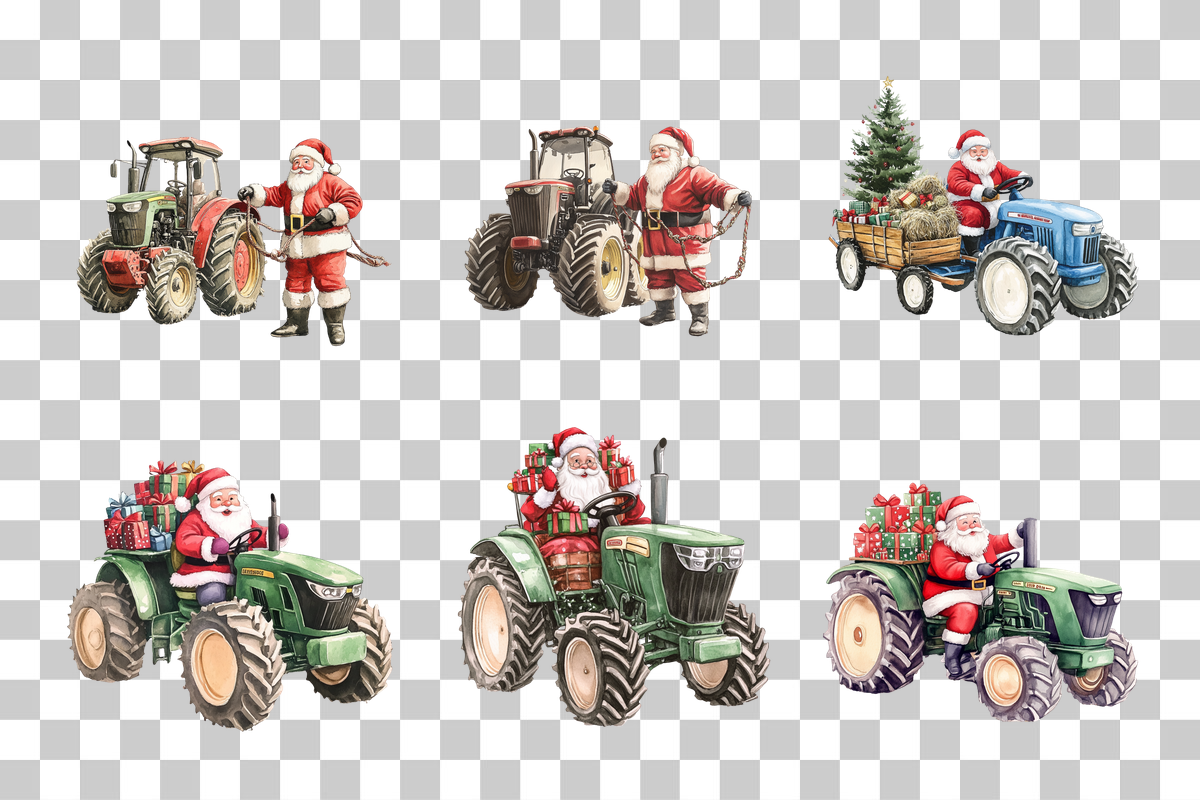Festive Santa Tractor Farm Christmas Clipart Bundle