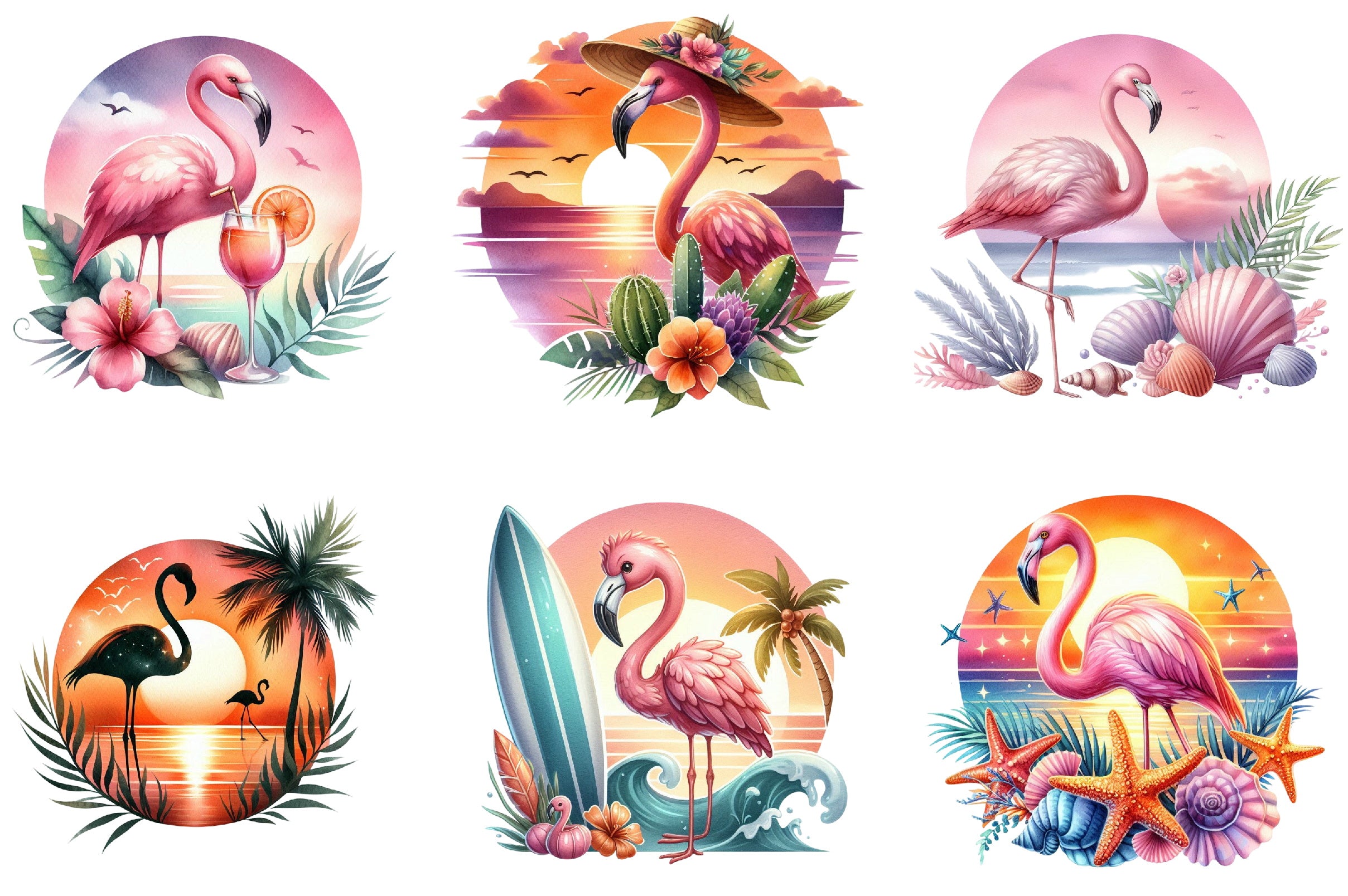 Capture the essence of paradise with our Flamingo Beach Sunset Clipart Bundle. Perfect for tropical-themed projects, this vibrant collection features stunning sunset hues and elegant flamingos, ideal for invitations, scrapbooking, and more. Transform your creative ideas into reality with these high-quality, versatile designs that bring a touch of exotic beauty to any craft.