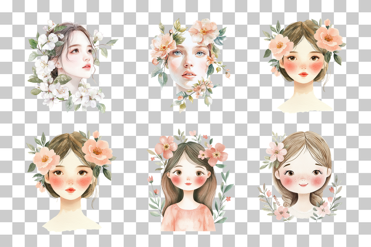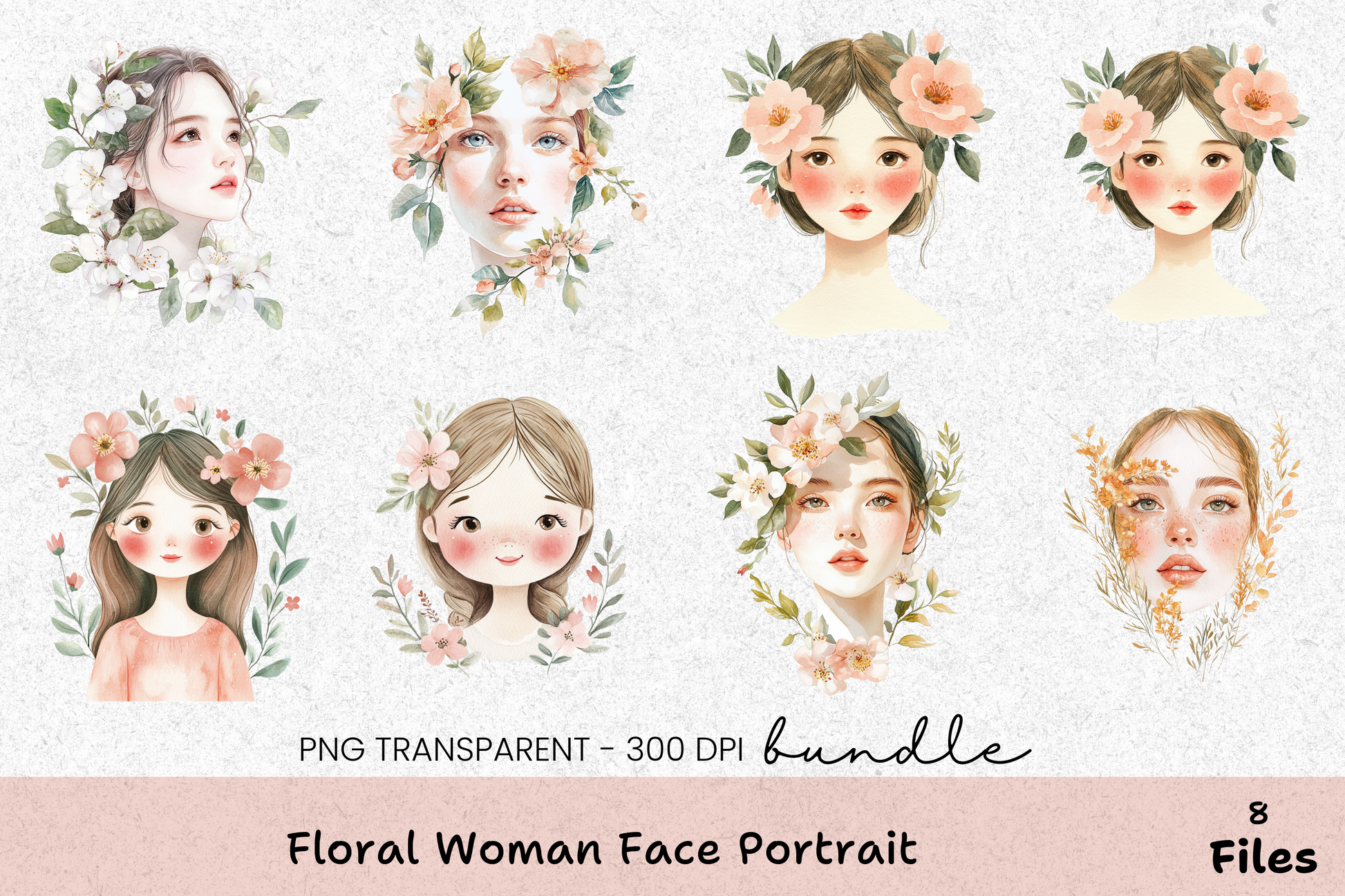 Enhance your creative projects with our Floral Woman Face Portrait Clipart Bundle, featuring exquisite floral designs and elegant female portraits. Perfect for crafting, scrapbooking, and digital art, this versatile collection adds a touch of sophistication to any project. Ideal for artists, designers, and DIY enthusiasts looking to elevate their work with unique and captivating illustrations. Unleash your creativity and transform your designs with this stunning clipart bundle today.