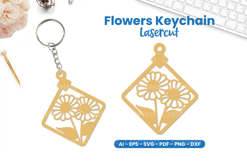 Flowers Keychain Lasercut SVG Clipart Bundle