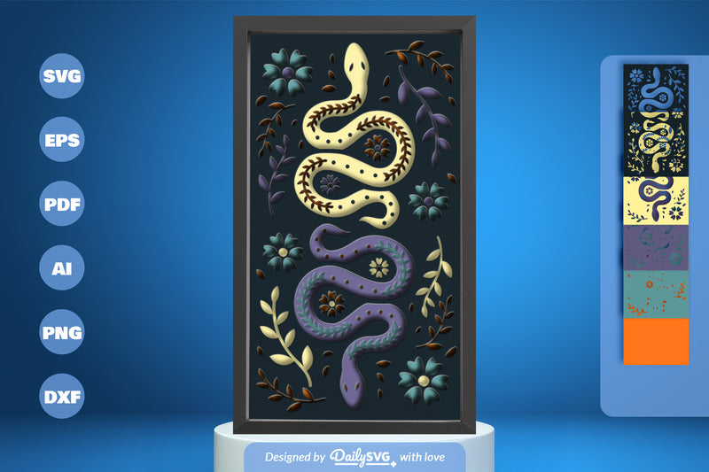 Unleash creativity with the Folk Art Snake Papercut SVG Bundle, featuring intricate snake designs perfect for unique crafts and home decor projects.