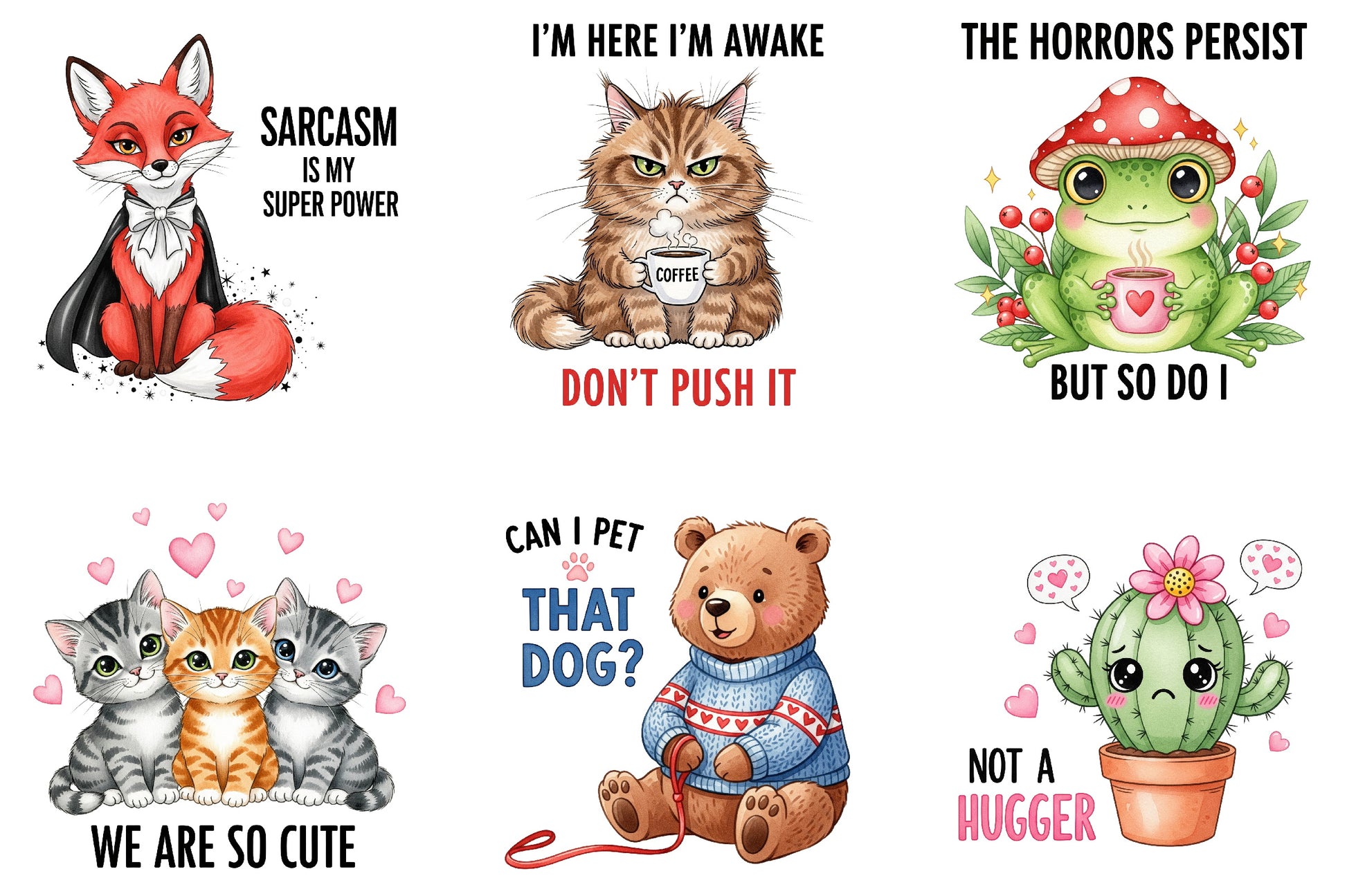 Unleash creativity with our Funny Animal Quotes Clipart Bundle, featuring whimsical animal designs paired with hilarious quotes, perfect for unique DIY projects and personalized gifts.