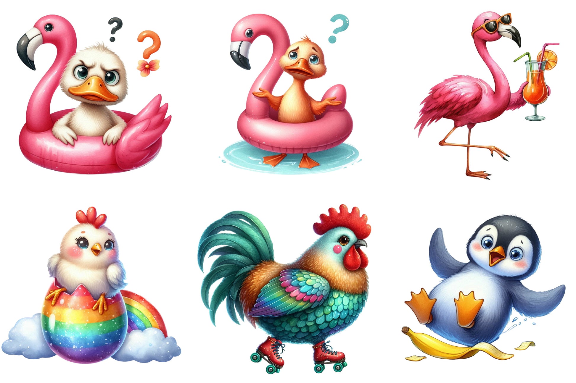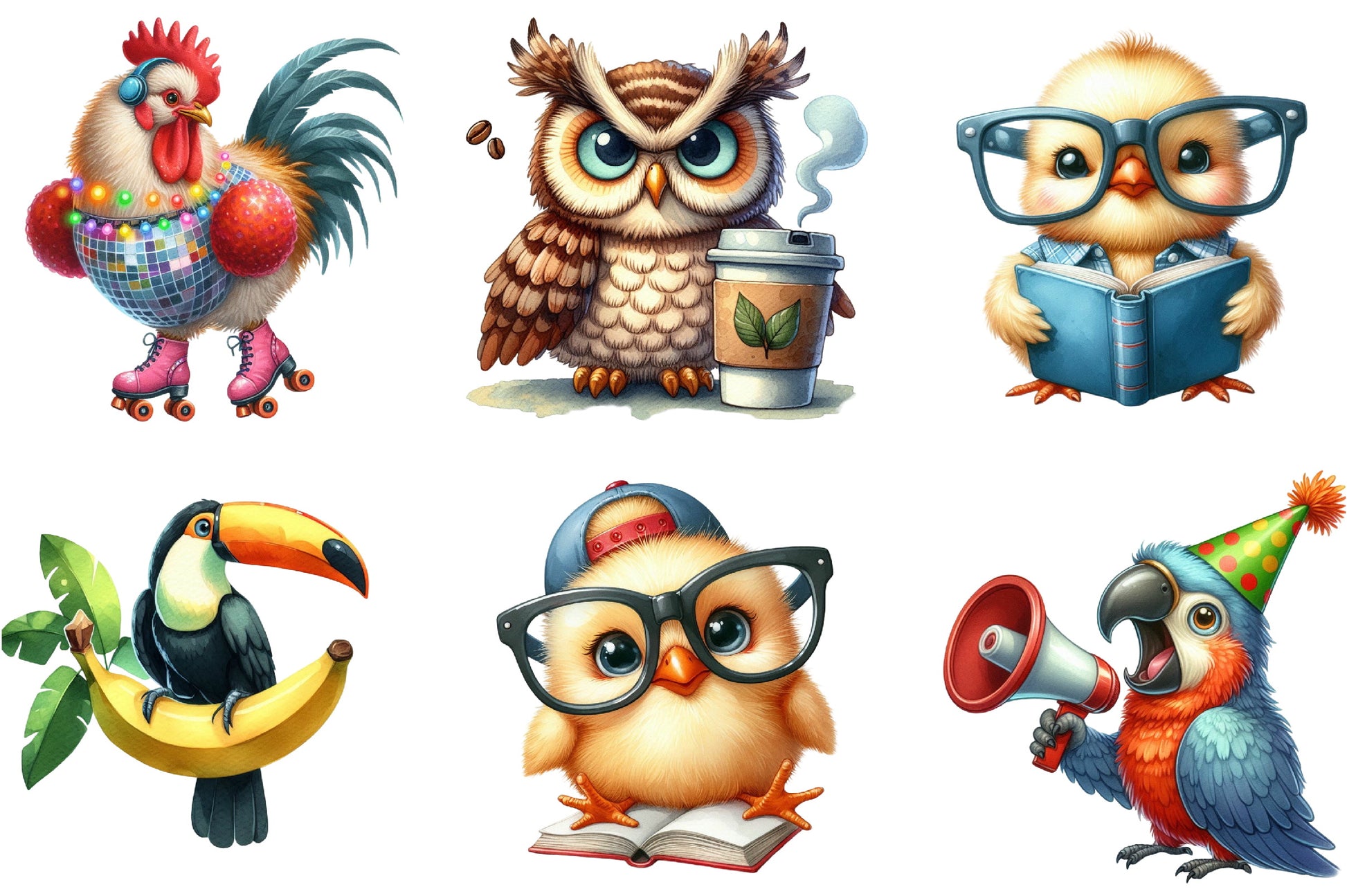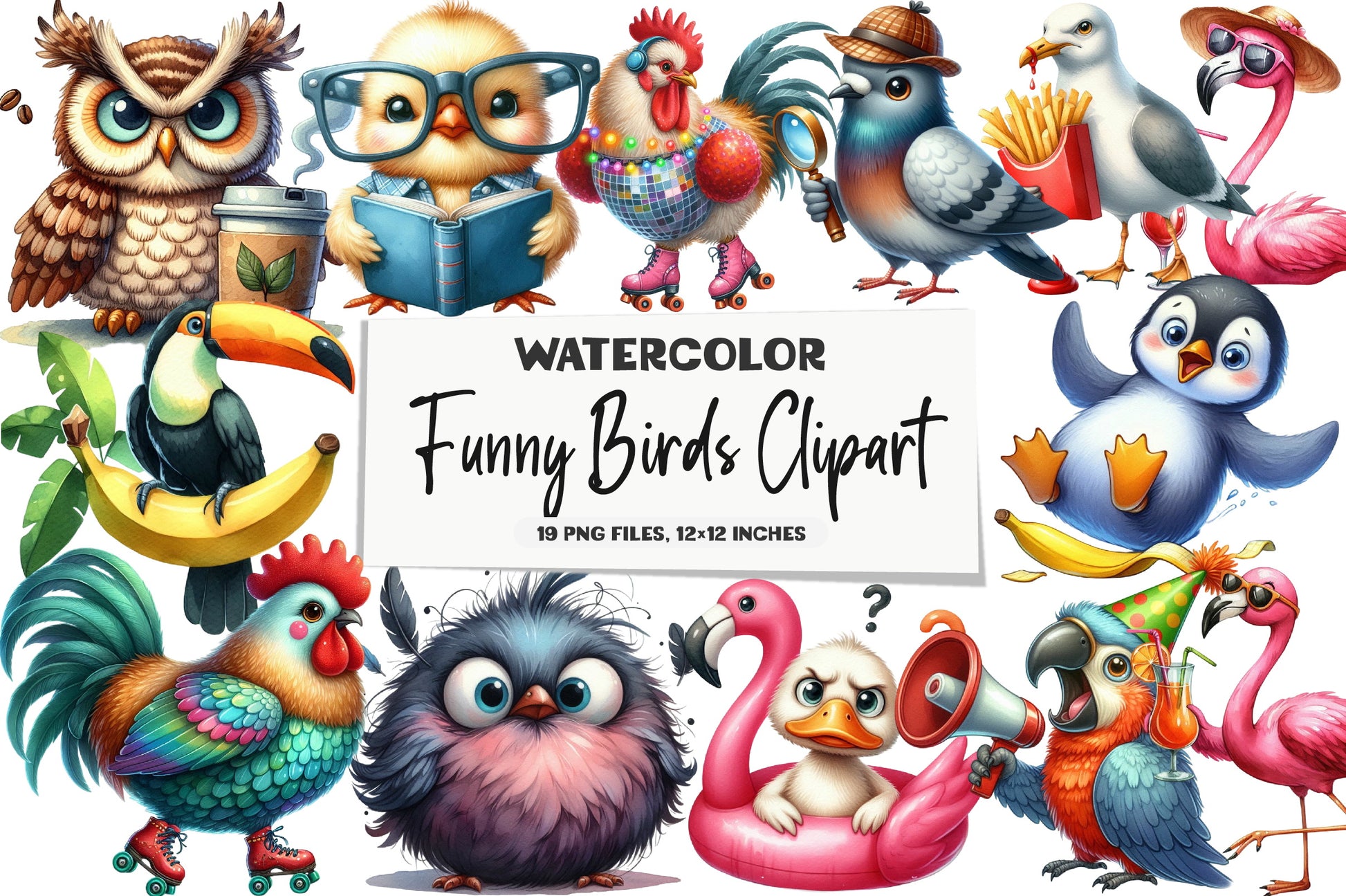 Discover the whimsical charm of our Funny Birds Clipart Bundle, featuring a delightful array of quirky bird designs perfect for creative projects. Ideal for crafting, scrapbooking, and digital design, these vibrant illustrations bring a playful touch to any creation. Unleash your imagination with this versatile collection, perfect for adding a splash of humor and color to your work. Elevate your artistic endeavors with these unique bird graphics, designed to inspire and entertain.