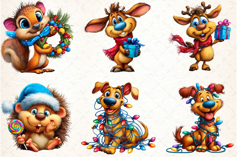 Funny Christmas Animal Clipart Bundle
