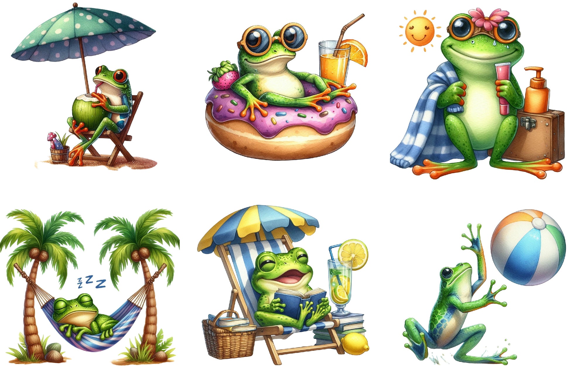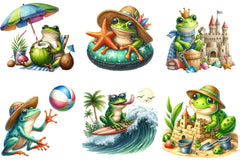 Funny Cute Frog Beach Clipart Bundle