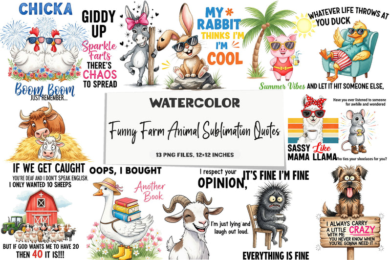 Unleash creativity with our Funny Farm Animal Quotes Clipart Bundle, featuring whimsical farm animal designs perfect for playful nursery projects and unique DIY crafts.