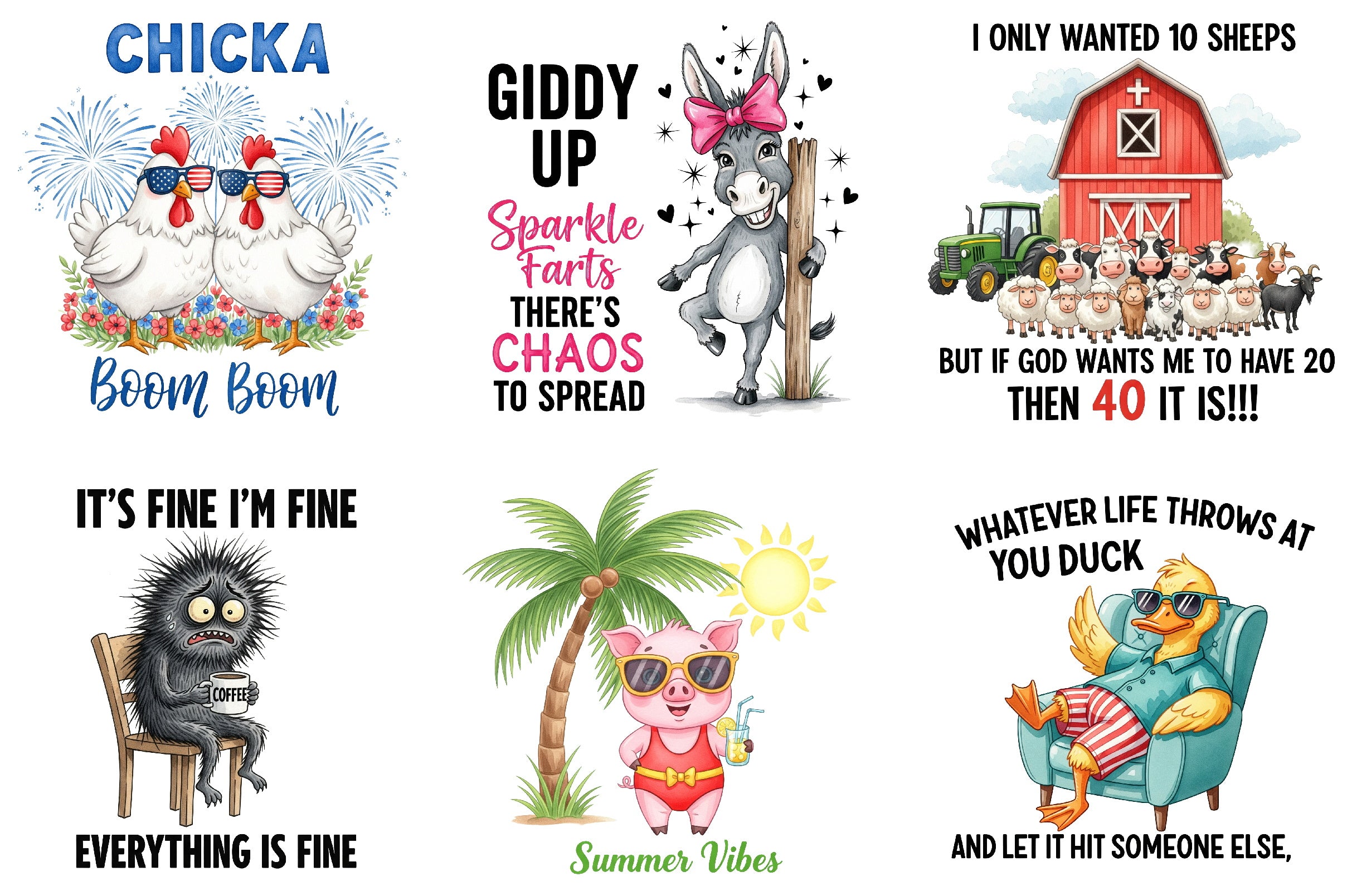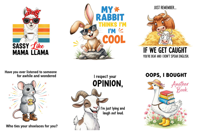Enhance your designs with our Funny Farm Animal Quotes Bundle, offering a variety of quirky and fun illustrations for all your crafting needs.