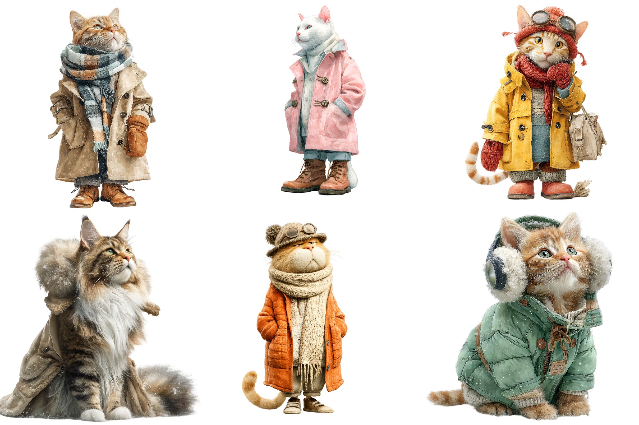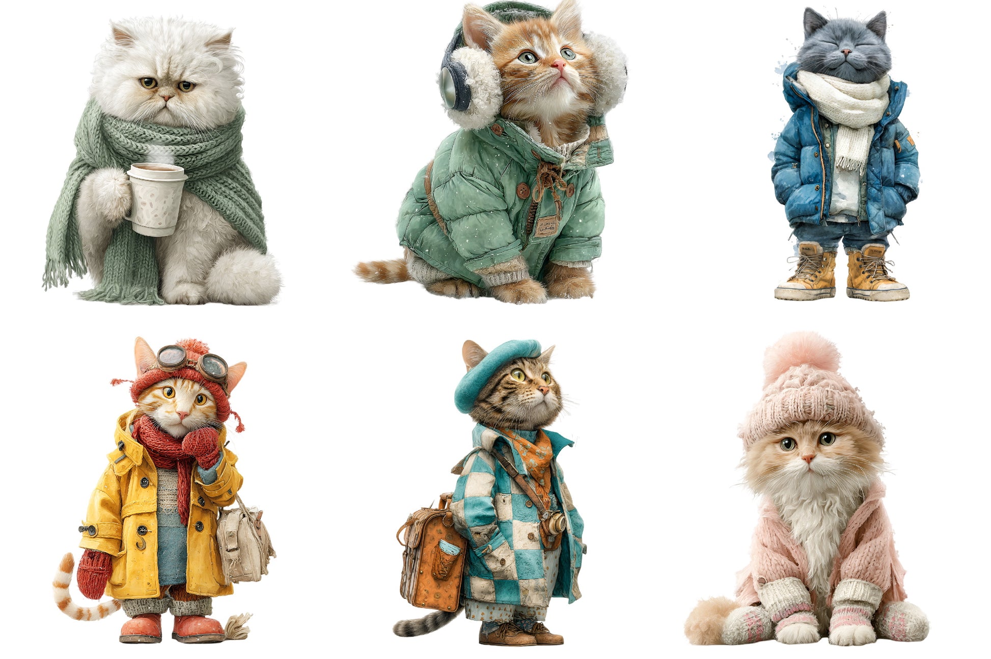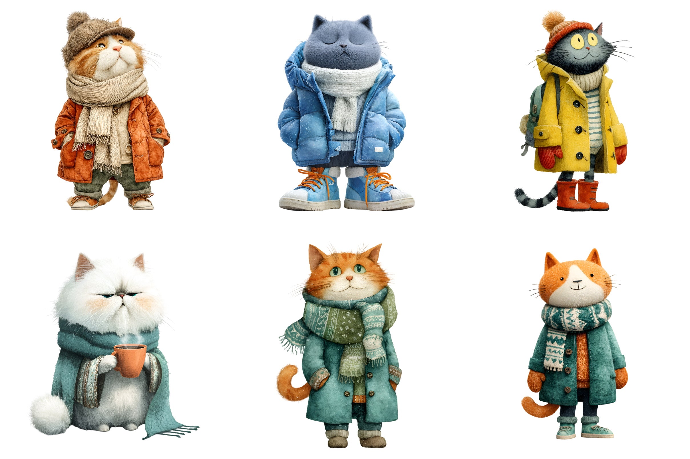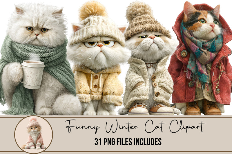 Delight in the whimsical charm of our Funny Winter Cat Clipart Bundle, featuring playful feline designs perfect for cozy seasonal projects. Ideal for holiday cards, festive crafts, and digital decorations, these adorable cat illustrations bring a touch of humor and warmth to your creative endeavors. Unleash your imagination with this unique collection, perfect for cat lovers and winter enthusiasts alike.