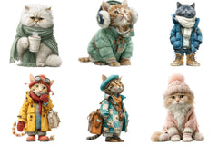 Funny Winter Cat Clipart Bundle