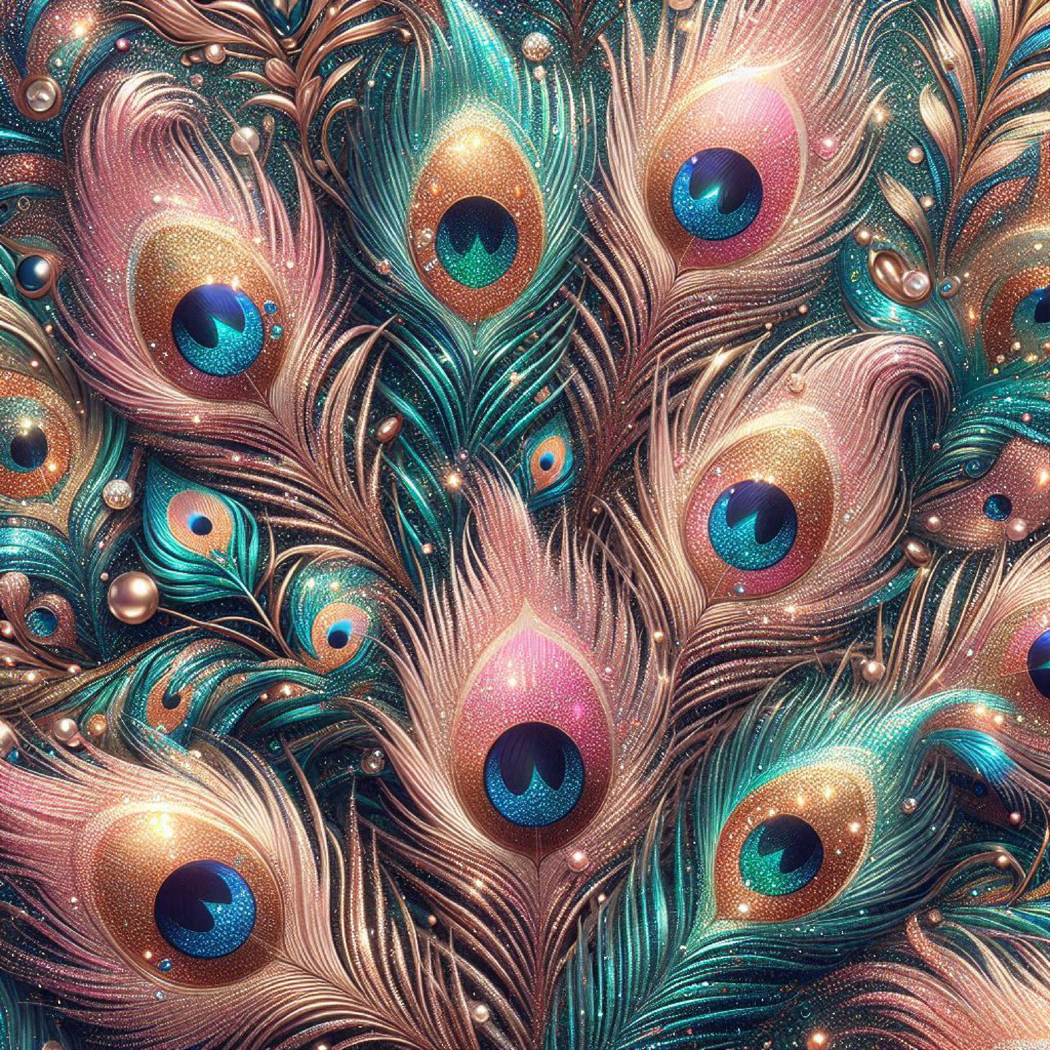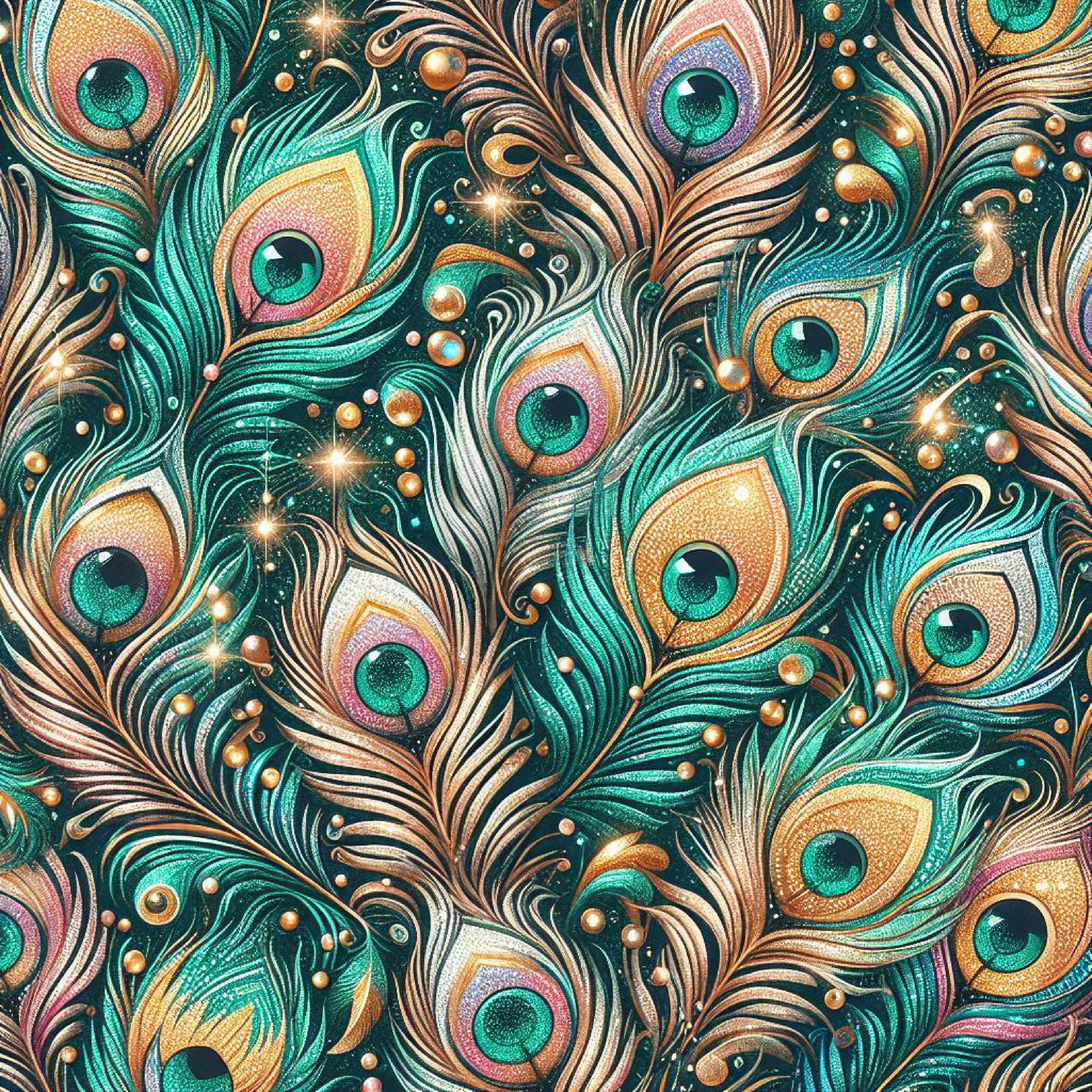 Glitter Peacock Feathers Digital Paper