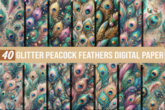 Transform your creative projects with our Glitter Peacock Feathers Digital Paper, featuring vibrant, shimmering designs perfect for scrapbooking, invitations, and crafts. Ideal for adding a touch of elegance and sparkle to any project, these digital papers are a must-have for DIY enthusiasts and designers. Explore a world of color and texture with our unique peacock feather patterns, perfect for creating stunning backgrounds and eye-catching designs. Elevate your artistic creations with the luxurious allure of glittering peacock feathers today!