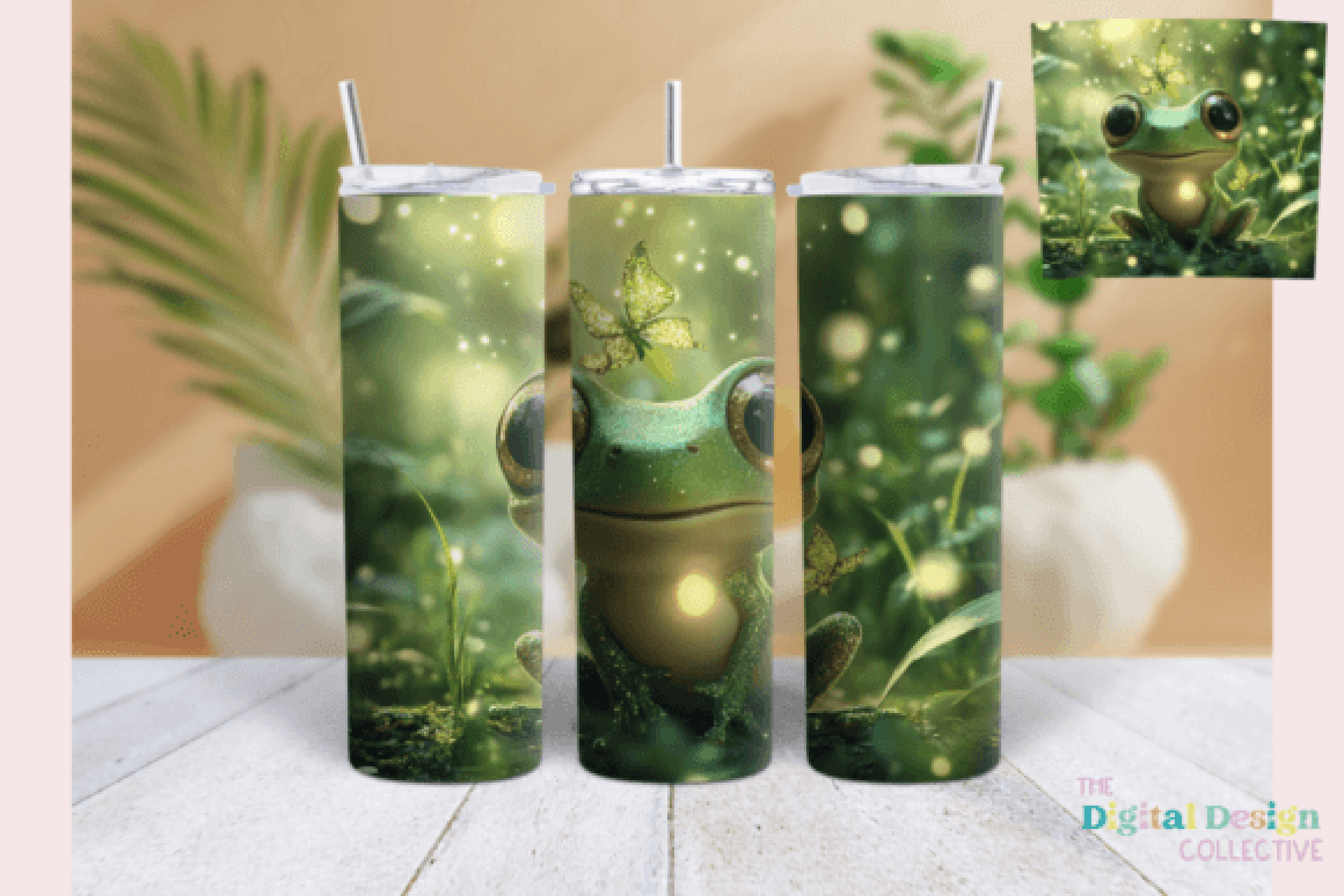 Transform your tumbler with the Glitter Whimsical Frog Tumbler Wrap Design, featuring enchanting frog motifs and sparkling glitter accents, perfect for adding a touch of whimsy to your drinkware collection.