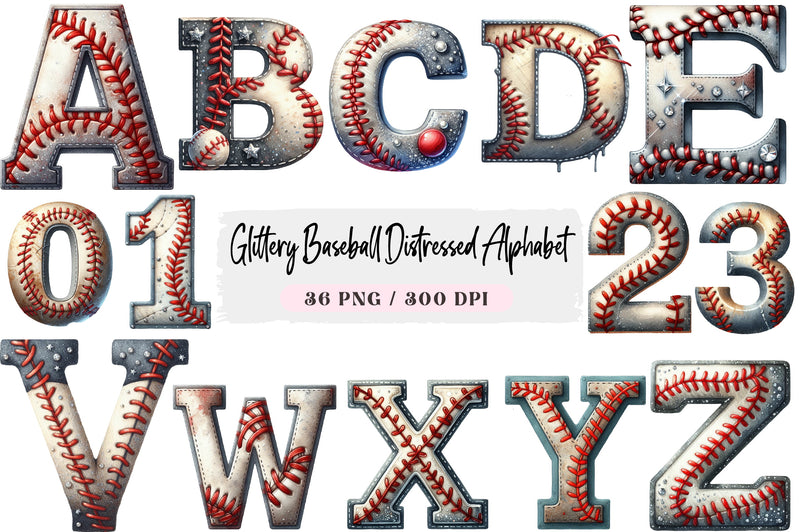 Unleash creativity with our Glittery Baseball Distressed Alphabet Clipart Bundle, perfect for sports-themed projects and personalized crafts. This versatile collection features unique, distressed letters with a sparkling twist, ideal for custom t-shirts, party invitations, and more. Elevate your designs with this eye-catching alphabet set, tailored for baseball enthusiasts and creative minds alike. Transform ordinary projects into extraordinary masterpieces with our glittery clipart bundle today!