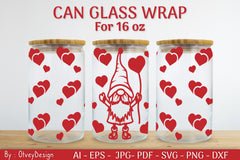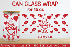 Gnome Valentine Can Glass 16 OZ SVG Bundle