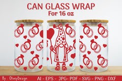 Gnome Valentine Can Glass 16 OZ SVG Bundle