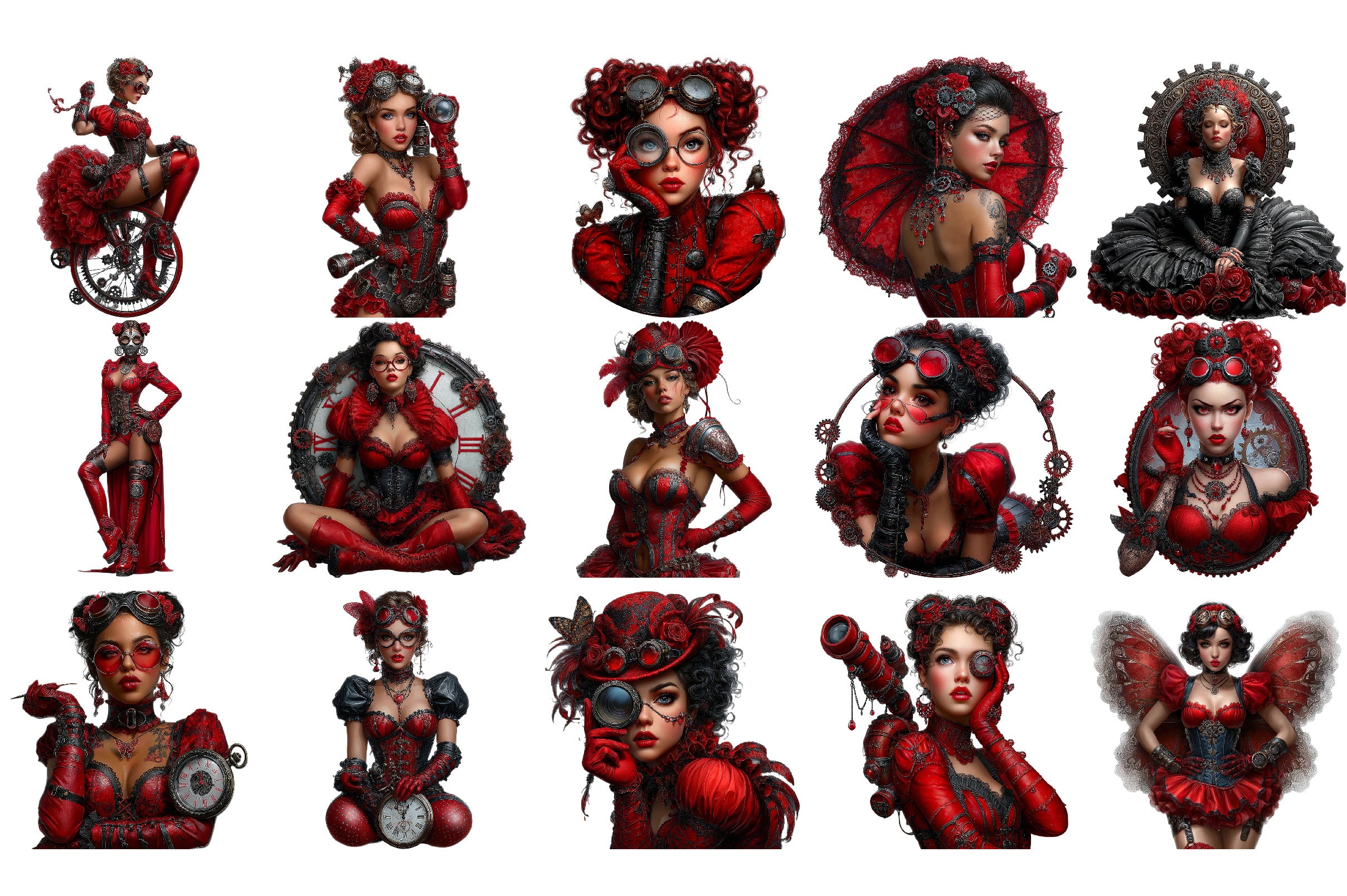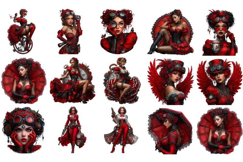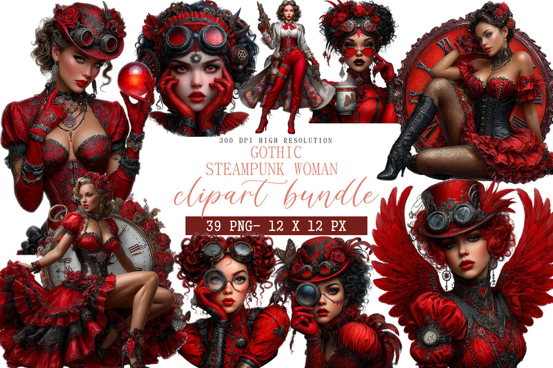 Gothic Steampunk Woman Clipart Bundle