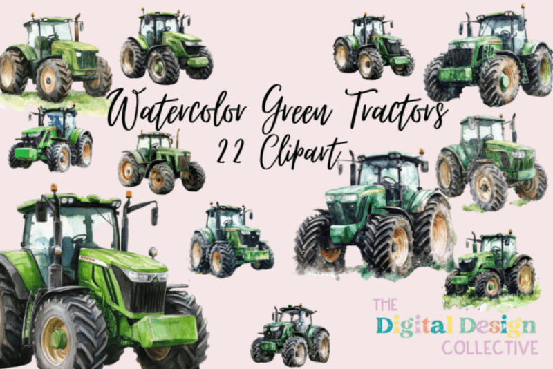 Enhance your creative projects with the Green Tractor Clipart Bundle, featuring vibrant tractor designs perfect for crafts, scrapbooking, and educational materials. Ideal for farm-themed projects and DIY enthusiasts.