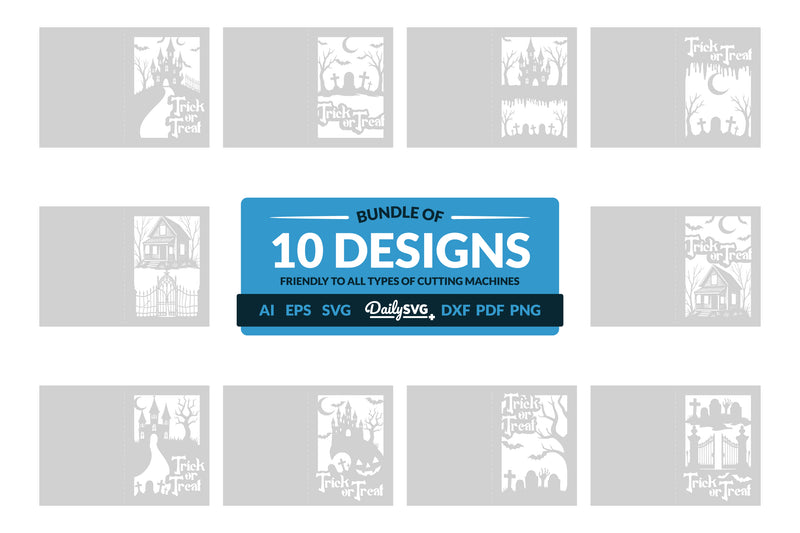 Spookify your crafts with our Halloween Greeting Card Papercut Clipart SVG Bundle. Perfect for creating eerie yet charming cards, this bundle features intricate designs that capture the essence of Halloween. Ideal for DIY projects, scrapbooking, and festive decorations, these SVG files ensure your creations stand out. Unleash your creativity and make this Halloween unforgettable!