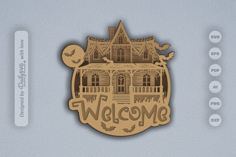 Spookify your crafts with the Halloween Haunted House 3D SVG Bundle, featuring intricate haunted house designs perfect for eerie decorations and spine-chilling DIY projects.