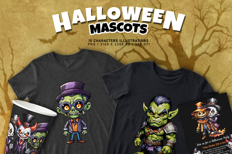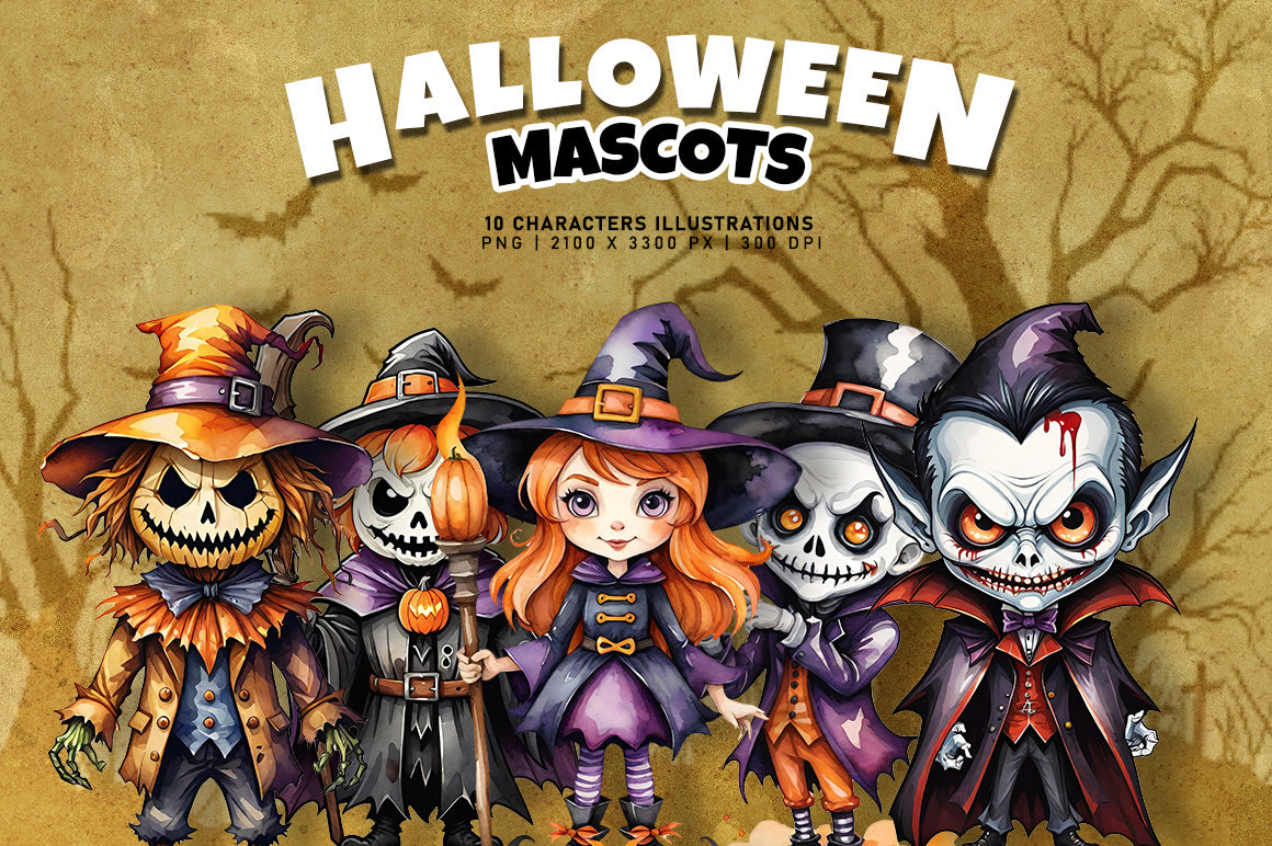 Unleash the spirit of Halloween with Halloween Mascots 01, featuring spooky yet adorable mascot designs perfect for festive decorations and party crafts.