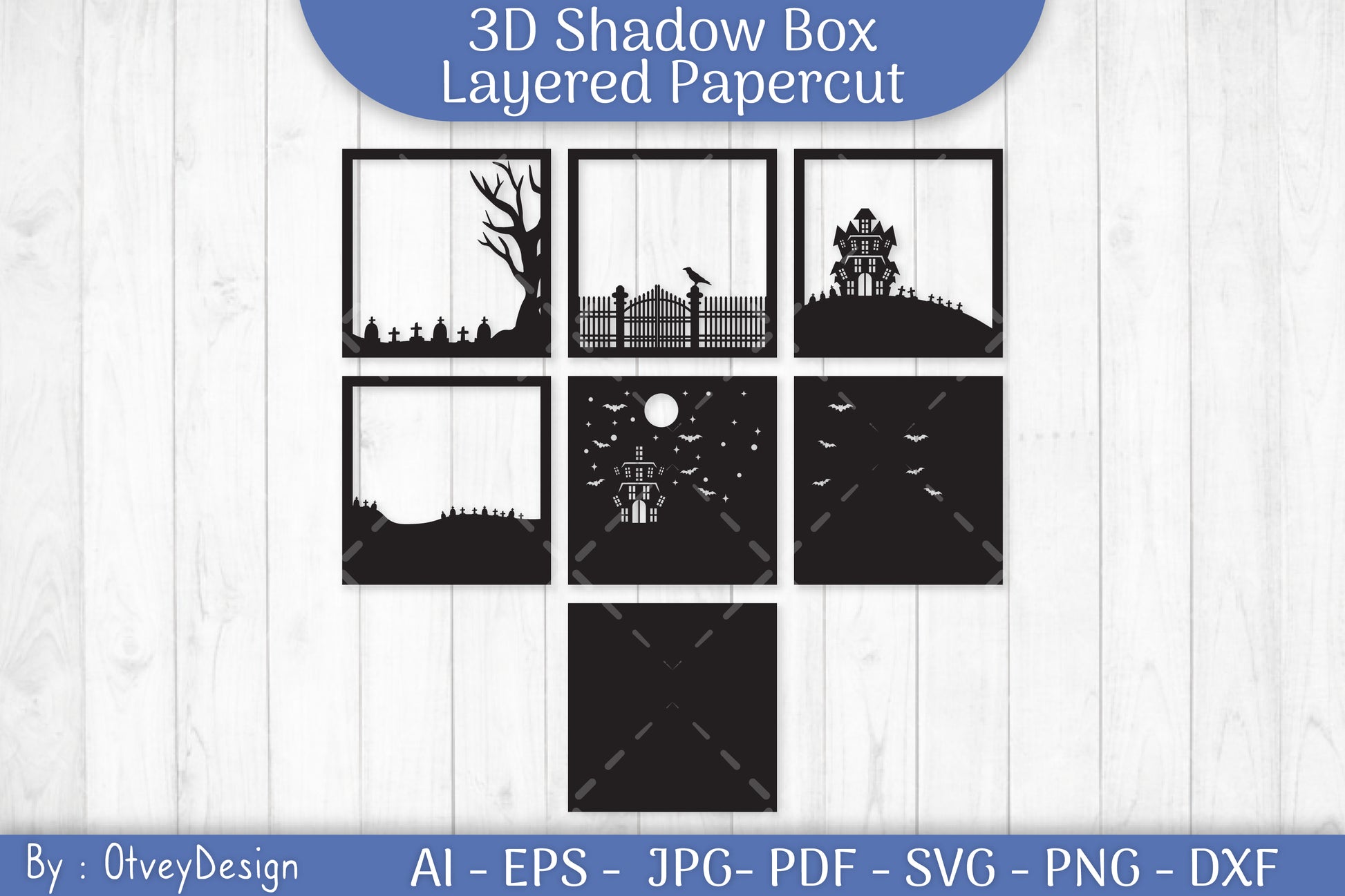 Transform your Halloween decor with the Halloween Scene 3D Layered Papercut Shadow Box SVG Bundle. This captivating collection features intricately designed spooky scenes, perfect for creating enchanting shadow boxes that add a touch of magic to your festive celebrations. Ideal for crafters and DIY enthusiasts looking to elevate their Halloween ambiance.