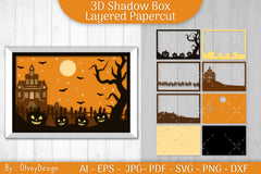 Halloween Scene 3D ShadowBox Layered Papercut SVG Bundle