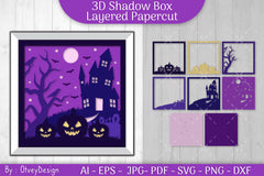 Transform your Halloween decor with the Halloween Scene 3D ShadowBox SVG Bundle, featuring intricate designs perfect for creating spooky, eye-catching displays. Ideal for crafters and DIY enthusiasts looking to add a unique touch to their Halloween festivities.