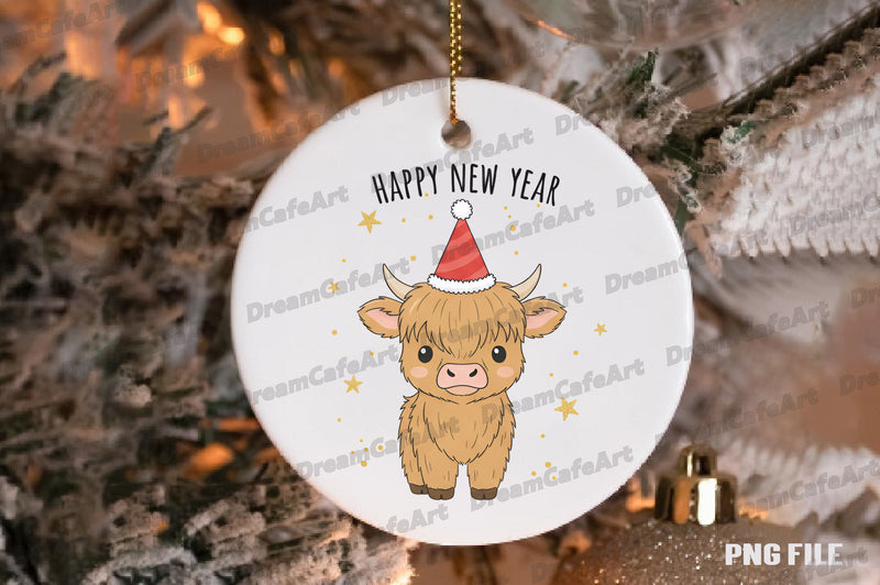 Happy New Year Highland Cow Clipart Bundle
