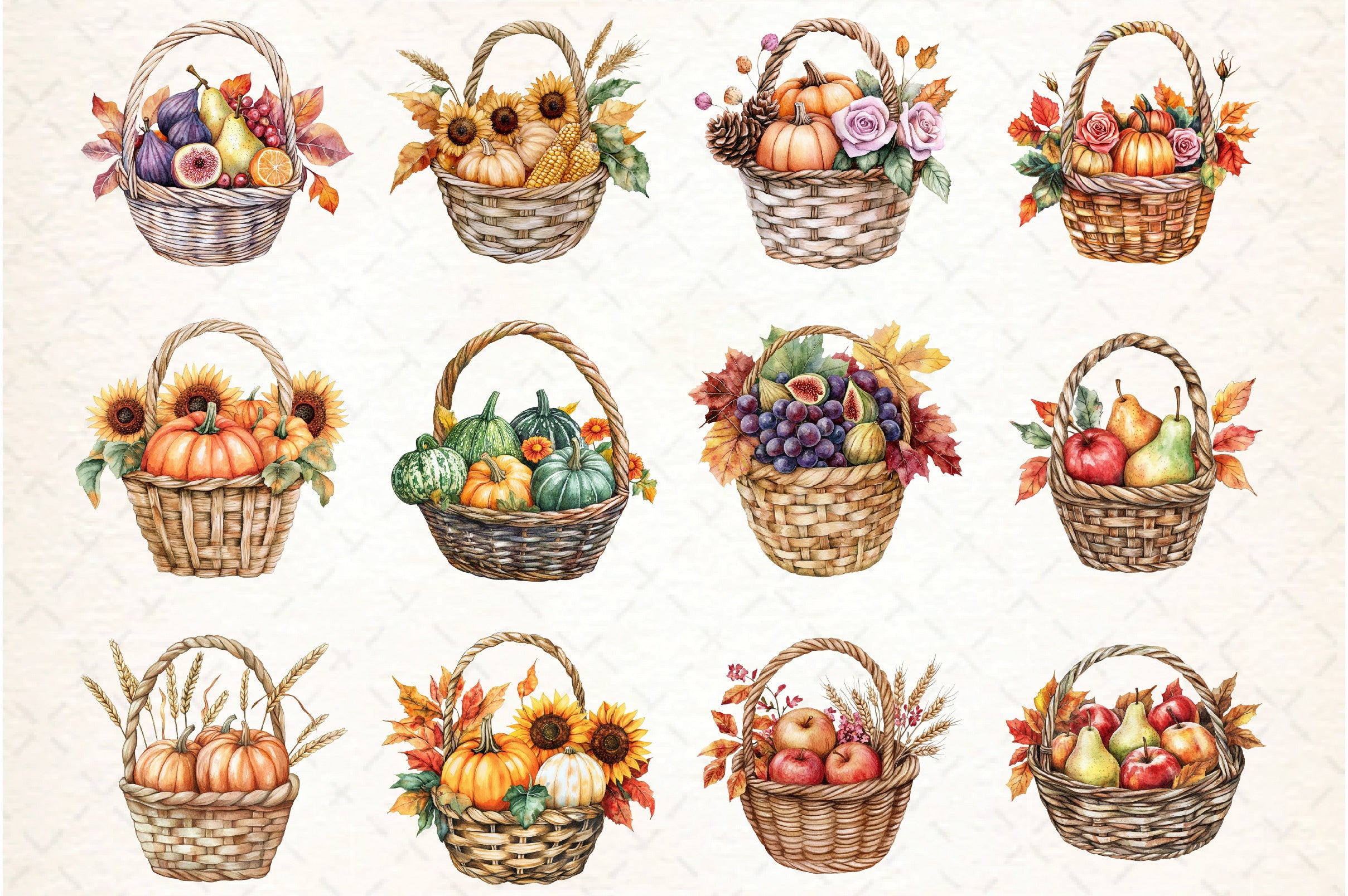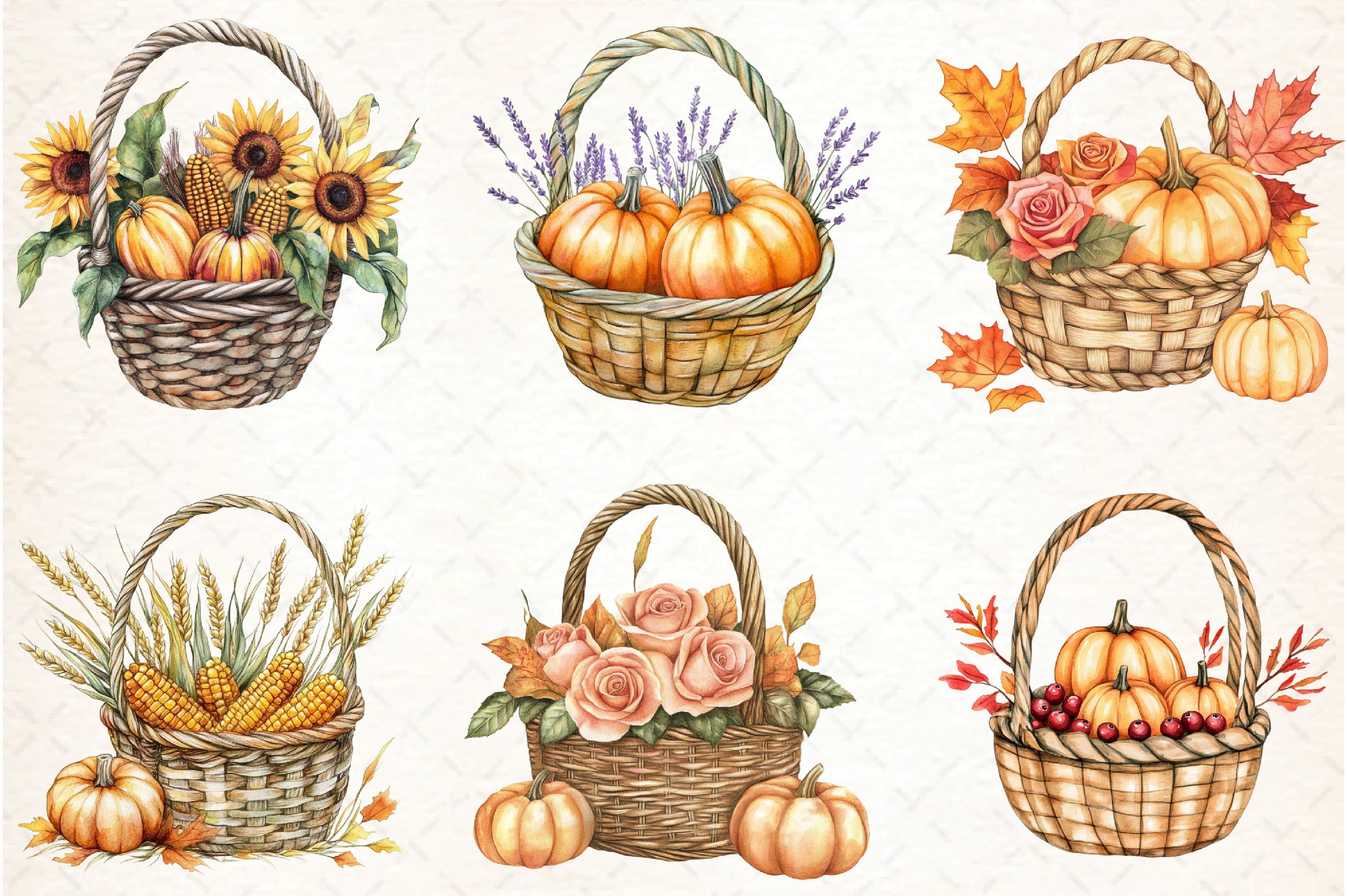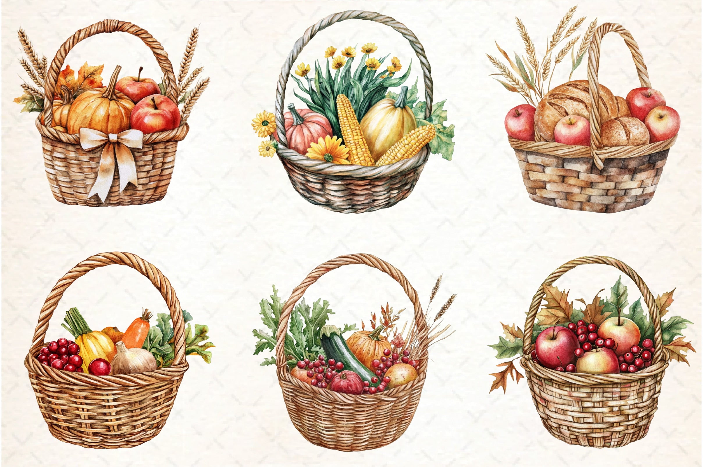Harvest Basket Thanksgiving Clipart Bundle